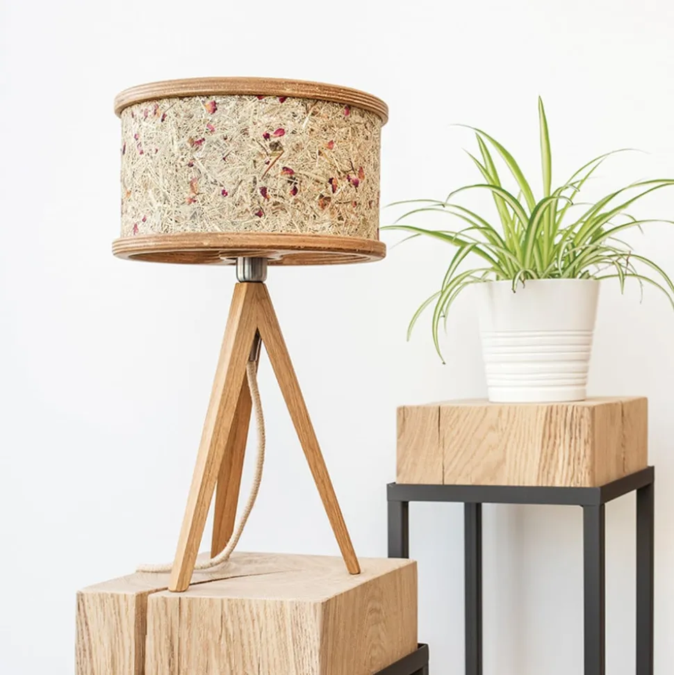 Natuurlijke Driepoot Tafellamp 2610 in Eikenhout en Hooi