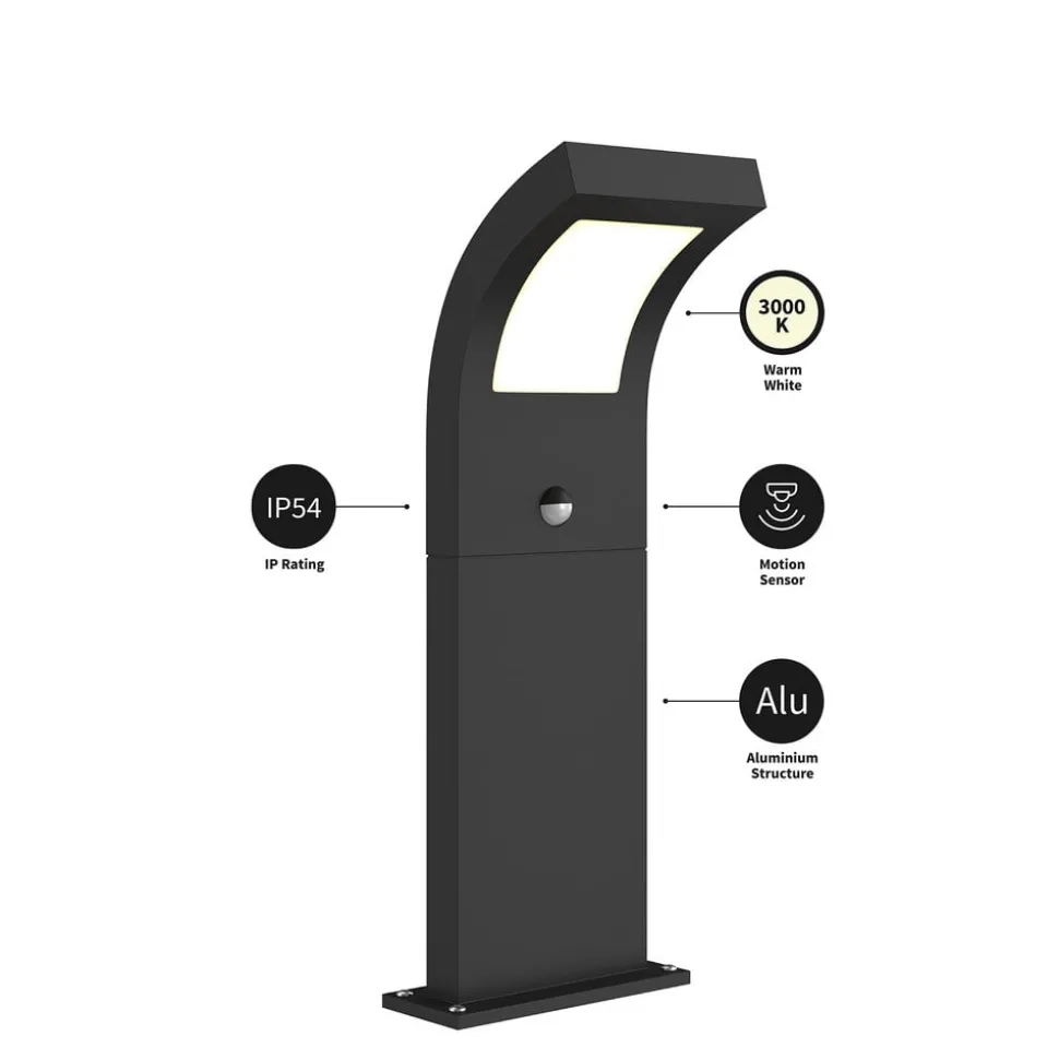 Grafietgrijze Advik LED tuinpadverlichting met ingebouwde sensor en schuine lampenkop De Advik LED tuinpadverlichting, die rond het huis en de tuin kan worden geplaatst en bijvoorbeeld paden op het terrein of de oprit verlicht, heeft een fundamenteel moderne uitstraling. Met beschermingsgraad IP54 kan hij zonder problemen buiten worden gebruikt. Het algehele ontwerp heeft een moderne, minimalistische uitstraling en het oppervlak is tijdloos grafietgrijs. De naar beneden gerichte lampenkop spot het licht naar de grond en voorkomt verblinding. Een geïntegreerde bewegingsmelder verhoogt de functionaliteit van de tuinpadverlichting, omdat de LED’s alleen aangaan als het licht echt nodig is omdat er beweging is gedetecteerd. Dit verhoogt de veiligheid op het terrein en beschermt tegen struikelgevaar en ongenode gasten, wiens aanwezigheid sneller wordt opgemerkt.