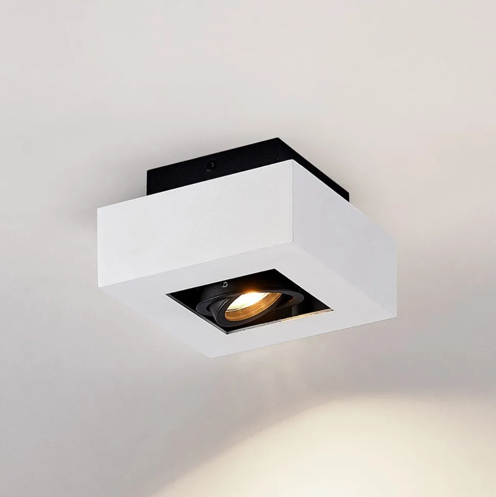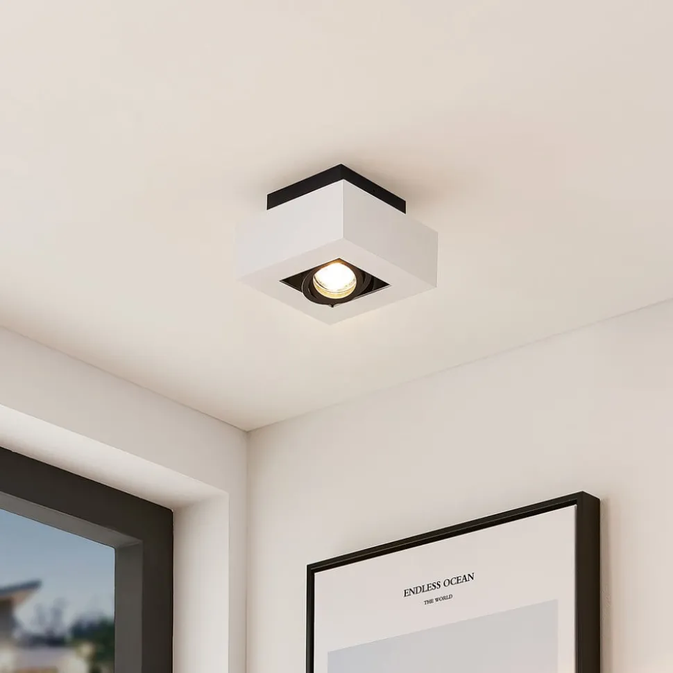 Vierkante plafondlamp Vince met kantelbaar inzetstuk De praktische plafondlamp Vince is een minimalistische en modieuze woonaccessoire. Voor de behuizing is gekozen voor een eenvoudige witte kleur, terwijl de lichtbron wordt omgeven door een zwarte rand. Ontworpen in een klassiek kleurenschema en een kubusvorm, kan deze downlight gemakkelijk worden geïntegreerd in verschillende inrichtingsstijlen. Het voordeel van dit armatuur is dat je de lichtrichting naar wens kunt richten, omdat de spot flexibel kan worden gedraaid. In de GU10 fitting, die apart verkrijgbaar is als accessoire, kan een energiebesparende LED lamp worden gestoken. De plafondlamp heeft een schroefloze aansluitklem voor een snelle, gemakkelijke en gereedschapsloze aansluiting van de bedrading.