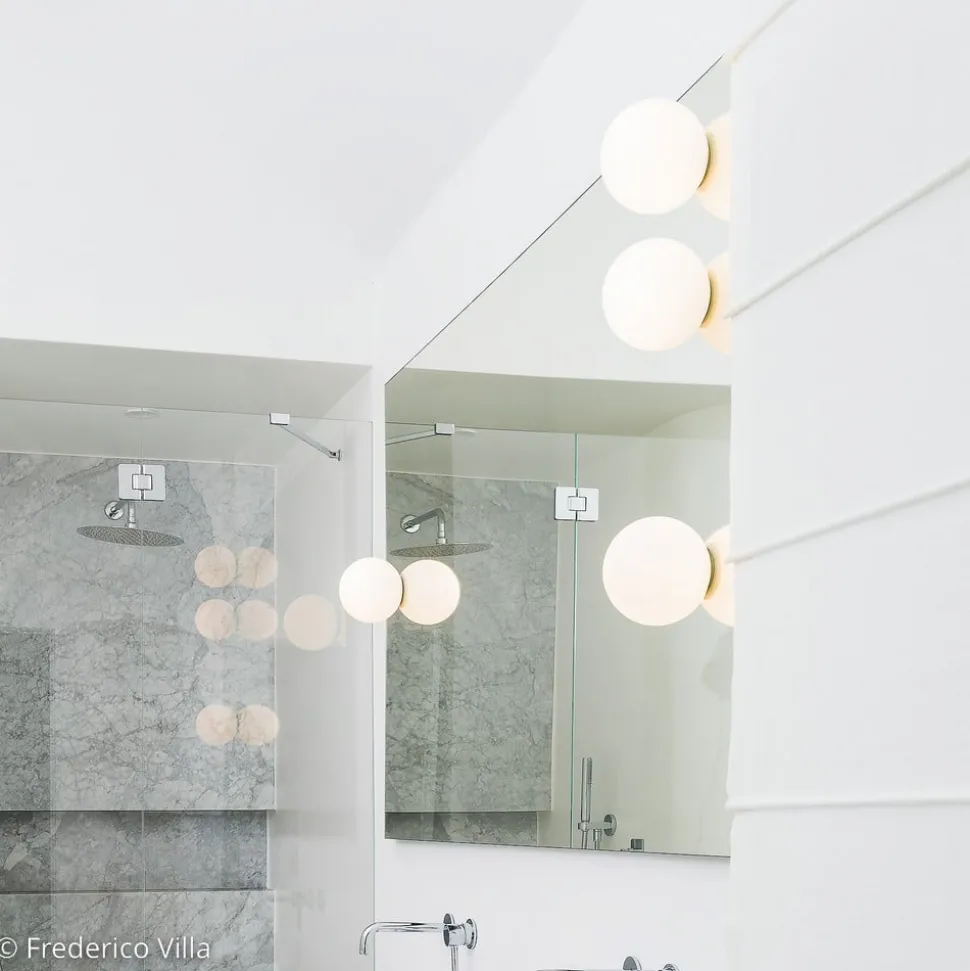 Dioscuri – bolvormige wandlamp met bescherming tegen waterstralen Deze eenvoudige, elegante wandlamp van handgeblazen glas maakt indruk met haar pure uiterlijk. Het doorlopende opalen glas, dat de vorm heeft van een bol, straalt rondom een diffuus licht uit en creëert een gezellige sfeer. Naast de veelzijdige reeks toepassingen binnenshuis, maakt IP65 het ook mogelijk om Dioscuri buitenshuis te gebruiken, waar het een sfeervolle verlichtingssfeer kan creëren wanneer de duisternis valt. Als alleenstaand armatuur of met meerdere op een rij – de wandlamp maakt indruk met zijn minimalistische design en aangename lichteffect – kan ook worden geïnstalleerd als plafondlamp – Design by Michele De Lucchi Michele De Lucchi ontwierp deze armatuurserie voor een van ’s werelds bekendste verlichtingsmerken – Artemide. Artemide combineert verlichtingsdesign met innovatie en hoogwaardige productie. Hun producten worden internationaal erkend als designiconen en zijn het resultaat van samenwerkingen met de beste jonge talenten. Een constante zoektocht naar innovatie en onderzoek brengt Artemide samen met uitstekende Italiaanse en internationale universiteiten.