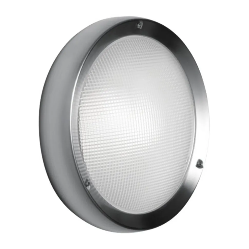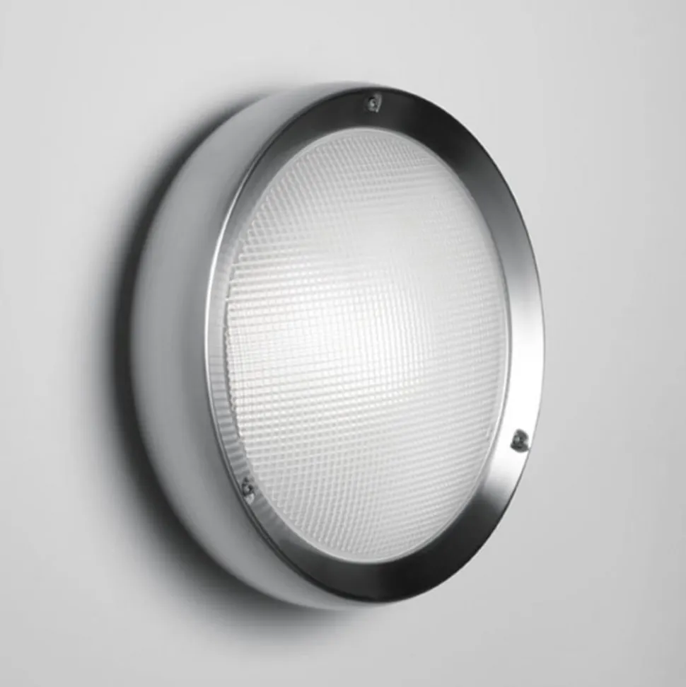 Ronde buitenwandlamp Niki van roestvrij staal met prismatisch glas Deze wandlamp kan buiten op veel verschillende manieren worden gebruikt, individueel of in groepen, vooral omdat ze ook geschikt is voor plafondmontage. De behuizing is gemaakt van roestvrij staal (AISI 316). Het licht van de te gebruiken Lamp wordt uitgestraald door een prismatisch glas, Das zorgt voor een diffuus verlichtingseffect. De armatuur is stofdicht en beschermd tegen waterstralen volgens beschermingsgraad IP65. Deze compacte, duurzame armatuur is ontwikkeld door Ernesto Gismondi, de oprichter van fabrikant Artemide (Italië). Zoals alle producten van het bedrijf voldoet de Niki buitenwandlamp aan de hoogste normen.