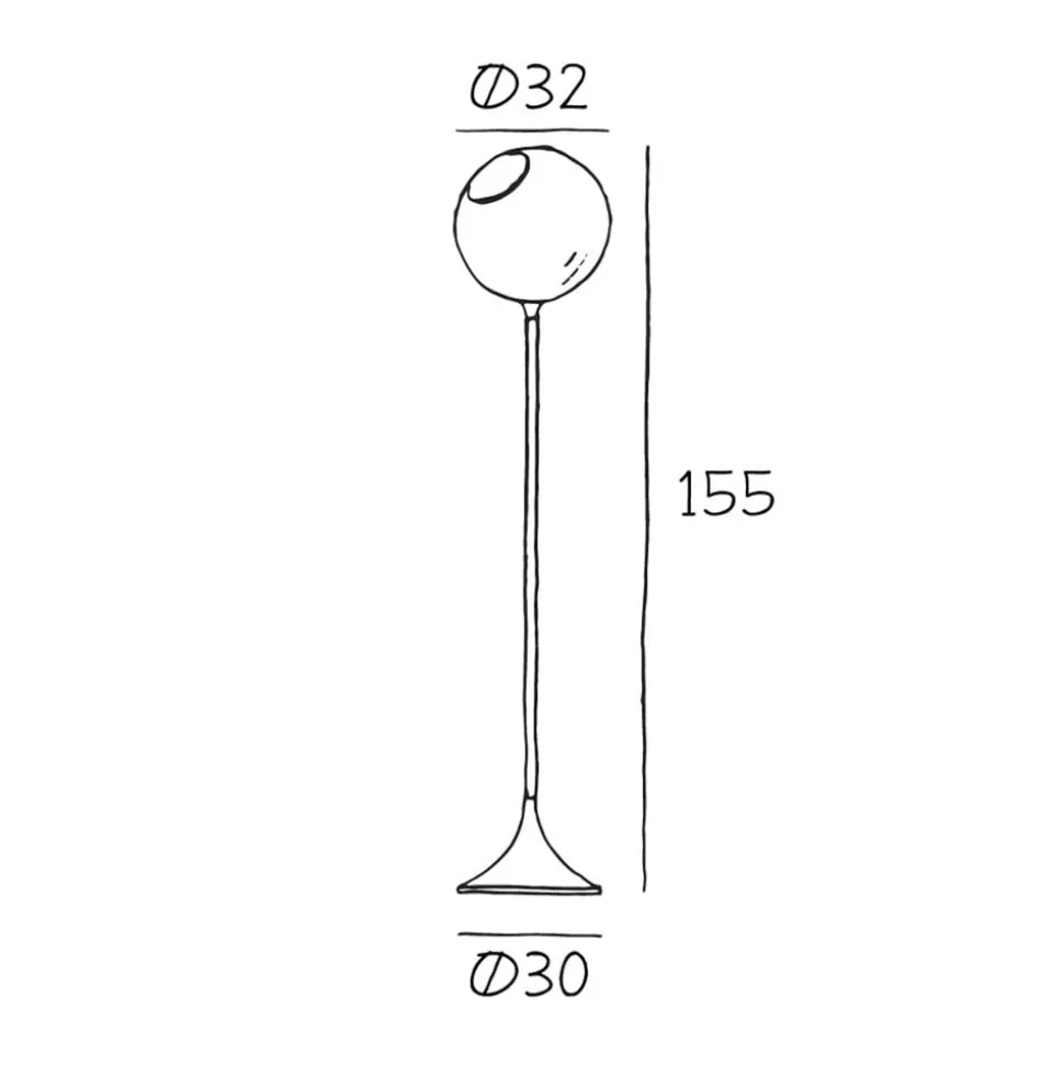 Geïntegreerde dimmer: Ballroom vloerlamp met handgeblazen glazen kap De kunstzinnig vormgegeven Ballroom vloerlamp van DESIGN BY US is overal een welkome HighLight. De Basis is gemaakt van monochroom geschilderd ijzer. Hierop troont de bolvormige kap van mondgeblazen, handgeschilderd glas. In de kap past een E27 lamp (niet inbegrepen, zie accessoires). Voor de witte versie wordt ook een mat witte lamp aanbevolen, terwijl voor alle andere kleurvarianten een lamp met zichtbare gloeidraden moet worden gekozen, omdat de lamp door de glazen kap heen te zien is. Je moet altijd kiezen voor een dimbare lamp, omdat het mogelijk is om de intensiteit van het licht te regelen met de schakelaar die is geïntegreerd in het netsnoer. De Ballroom vloerlamp is altijd een elegant designobject, zelfs als het licht niet aan is. Opmerking: Elke handgeblazen glazen lamp is uniek. Insluitsels in het glas (bubbels) tot 0,5 cm groot zijn mogelijk.