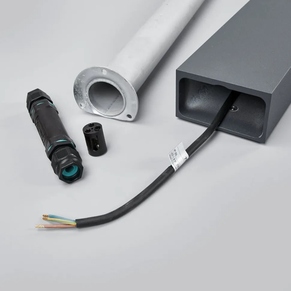 De bovenste helft van de LED tuinpadverlichting 77246K3 is aan één zijde voorzien van een witte afdekkap van veiligheidsglas, waardoor het licht vrijuit straalt. Hij is vooral geschikt voor gebieden met weinig omgevingshelderheid die slechts aan één zijde licht nodig hebben. Het armatuur, gemaakt van gegoten aluminium, wordt geleverd met een geslepen stuk gegalvaniseerd staal. Deze wordt in de grond vastgezet met beton. De padverlichting wordt vervolgens met behulp van een kabelconnector aangesloten, op het grondstuk aangesloten en vastgeschroefd.
