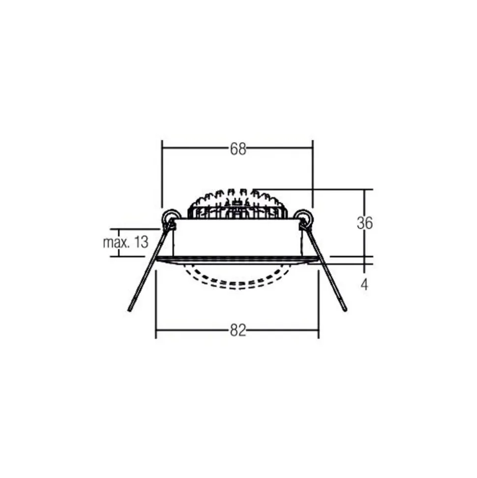 Ronde BB03 LED inbouwspot, draaibaar, met aansluitdoos en LED driver De BB03 inbouwspot, gemaakt van aluminium in een ronde vorm, is uitgerust met warmwitte LED’s. Deze bevinden zich in een armatuurkop die naar alle kanten kan worden bewogen, zodat het licht naar wens kan worden gericht. Deze bevinden zich in een lampenkop die naar alle kanten kan worden bewogen, zodat het licht naar wens kan worden gericht. Uitgerust met een zilverkleurige reflectorlamp met rotatiesymmetrische diepliggende lichtverdeling en een afdekking van transparant polycarbonaat wordt het licht optimaal verspreid. Het eenvoudige uiterlijk harmonieert met moderne inrichtingsconcepten; BB03 is de ideale downlight boven de kitchenette en in hotelgangen. Hij kan zonder gereedschap worden geïnstalleerd dankzij installatieveren en is uitgerust met een aansluitdoos – inclusief dimbare LED-converter – Stralingshoek: 38° – Zwenkbereik: 30° rondom – mag niet worden afgedekt met isolatiemateriaal