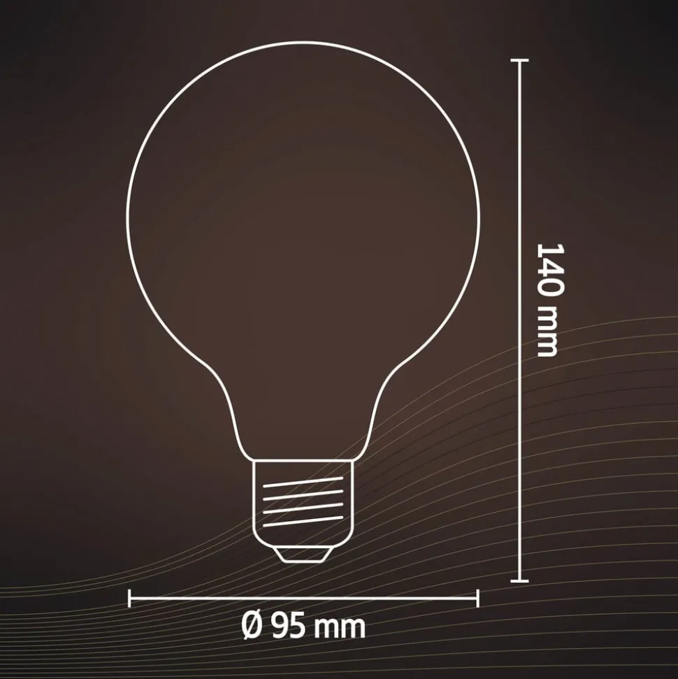 LED globe lamp E27 3,8W G95 met LED filamenten in spiraalvorm, dimbaarMet een kleurtemperatuur van 2.100 K is het licht van deze LED globe lamp met goudkleurig glas en decoratieve LED filamenten in spiraalvorm bijzonder warm en gezellig. De lamp is perfect voor gebruik in schaduwloze armaturen in alle ruimtes waar gezelligheid door zeer warme verlichting gewenst is. Het licht kan ook worden gedimd via een LED-dimmer (niet inbegrepen).