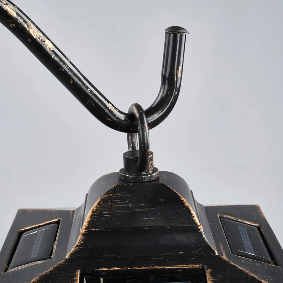 Deze met grondpennen uitgeruste solarlantaarns hebben een gebogen stang en een decoratieve lantaarn opzetstuk, die losjes in de sleuf op de stang hangt. Het oppervlak van de lantaarns is niet eenvoudig zwart, maar bovendien van fijne gouden penseelstreken voorzien, die een antieke uitstraling doet opkomen. Überhaupt zijn de lantaarns een beetje sprookjesachtig, en betoveren met hun decoratieve uitstraling de kijker en voorbijgangers snel. Zijn ze overdag al een aantrekkelijke blikvanger, zo geven ze pas na het invallen van de duisternis volledig prijs, wat ze werkelijk kunnen. Dan is namelijk het tijdstip gekomen, waarop de solarlantaarns niet alleen maar schijnen, maar in een sfeervol, geel licht beginnen te flikkeren, en daarmee echt kaarslicht bedrieglijk echt kunnen imiteren.