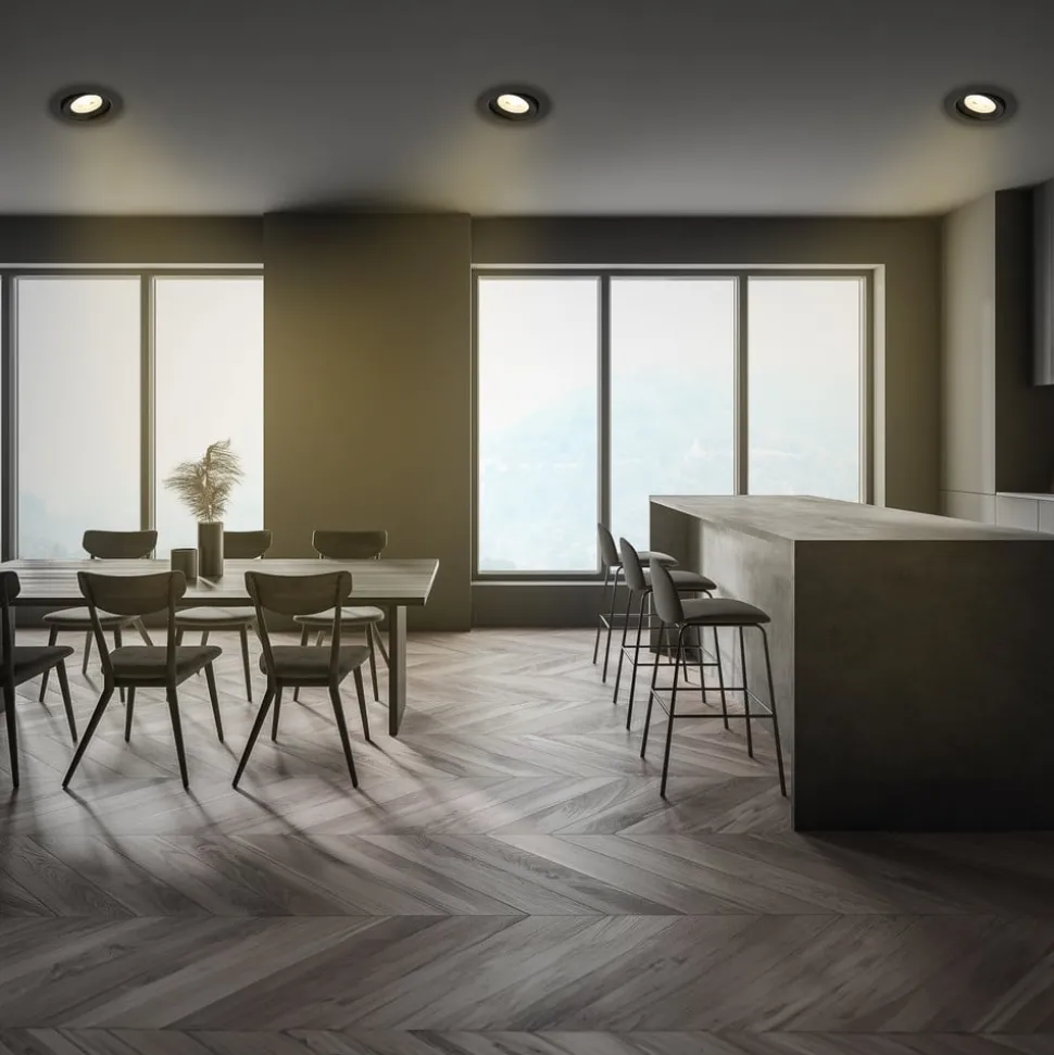 Praktische Desi LED lamp – kan worden gebruikt als inbouw- of opbouwlamp De kleine ronde Desi LED lamp kan zowel als inbouwlamp als opbouwlamp worden gebruikt. De lamp kan extern worden gedimd en kan worden gedraaid. Het kan in bijna elke kamer in huis worden gebruikt.