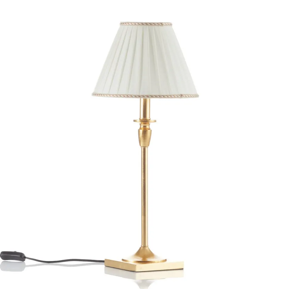 De kleur combinatie van crème stof en antiek gouden decoraties geeft de tafellamp een beeldige schoonheid. Donata is een perfecte lamp voor in een leefomgeving. De bijzondere eigenschap van het antieke oppervlak is ontstaan door handmatige arcering van het materiaal.
