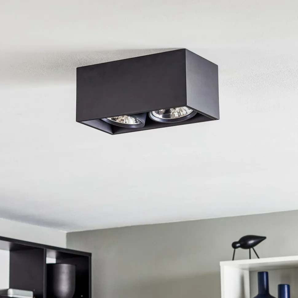 Deze plafondlamp van FLOS is overwegend ontworpen voor gebruik in architectonische en commerciële ruimtes, maar het is niet alleen de functionaliteit die hier centraal staat, het hele ontwerp is aantrekkelijk op een koele, puriteinse manier. De fitting van de interne halogeenlampen kan naar wens worden gedraaid, zodat het licht gericht kan worden. Een elektronische transformator is reeds geïntegreerd. Met de optionele toepassing van een fase-aan- of sectiedimmer kan de helderheid van de verlichting worden geregeld.