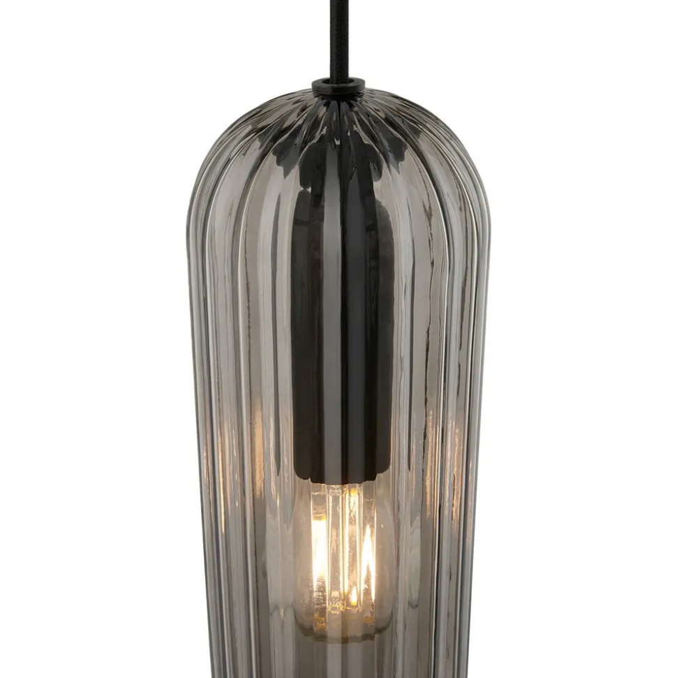 Hanglamp Miella, geribbeld glas, rookgrijs/zwart