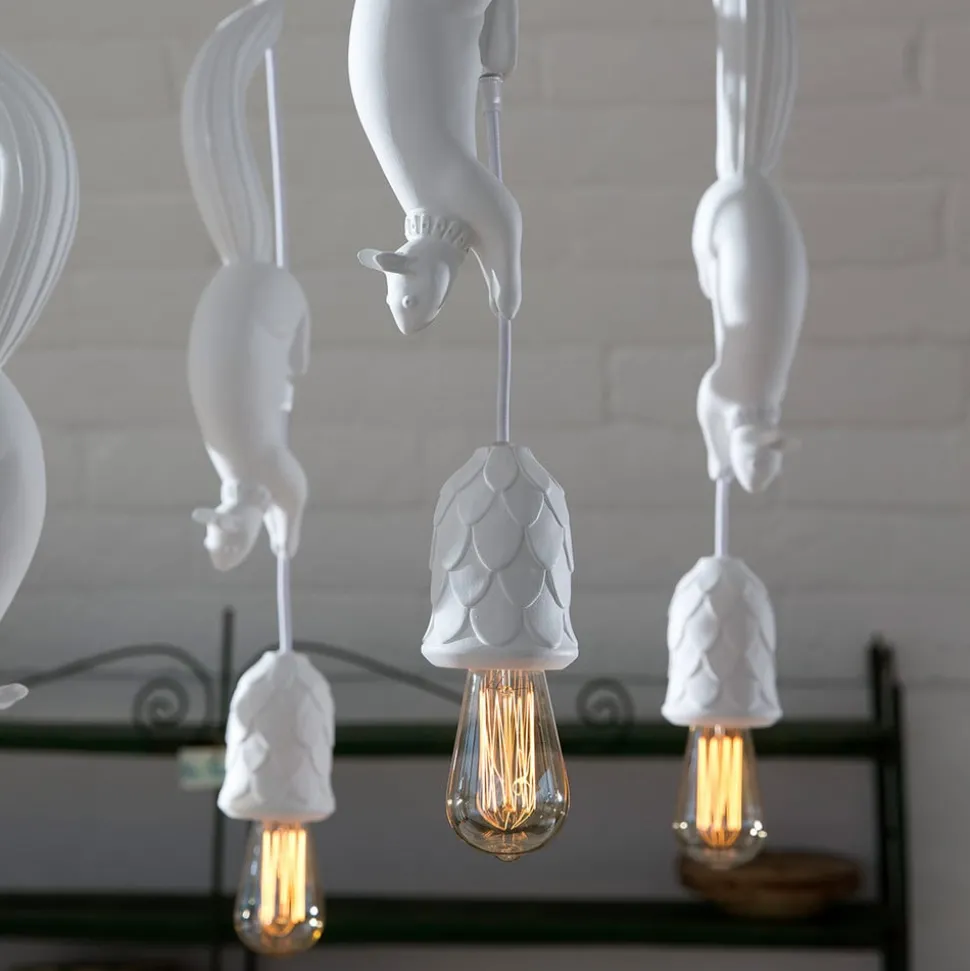 Hanglamp Sherwood e Robin met gipsen eekhoorns op slinger