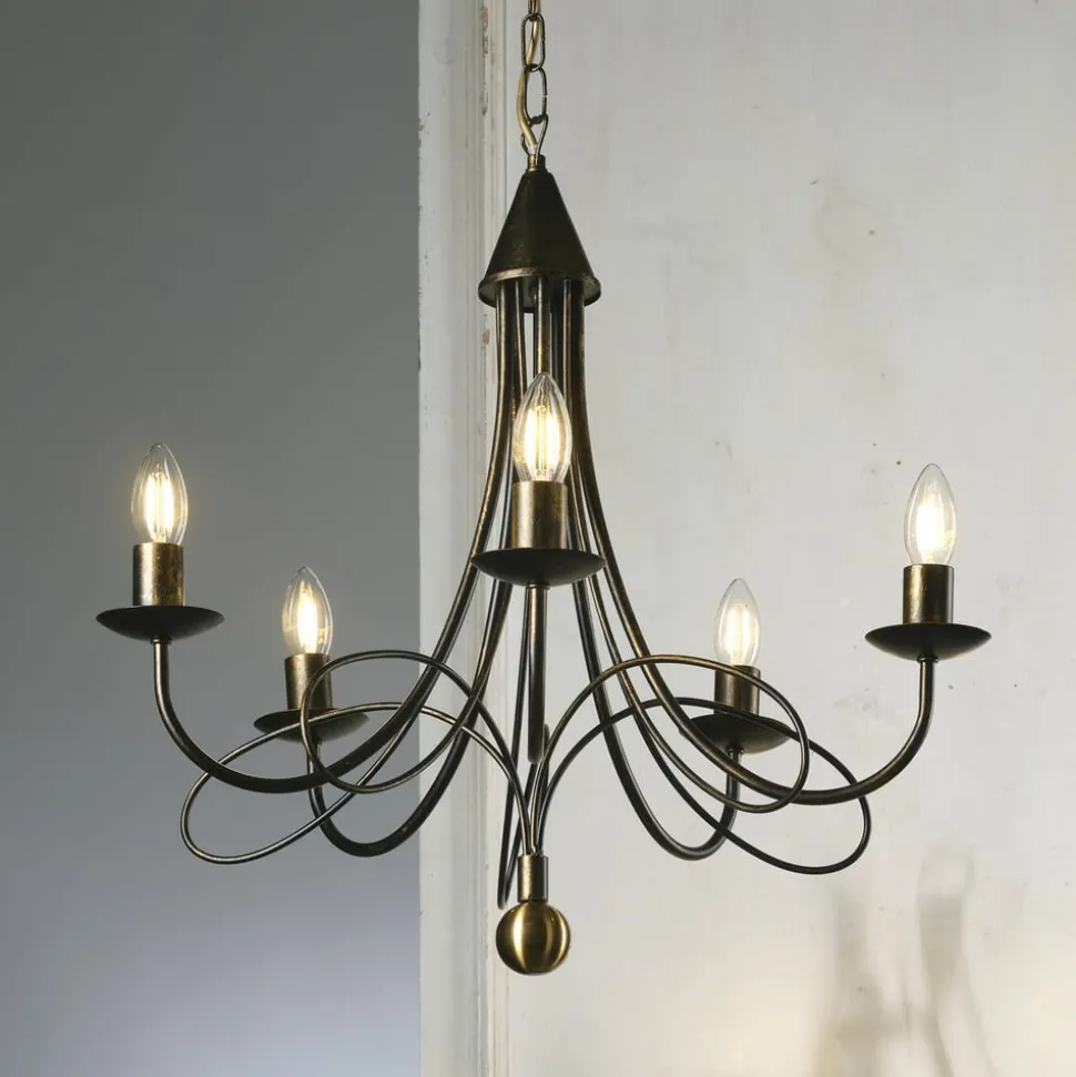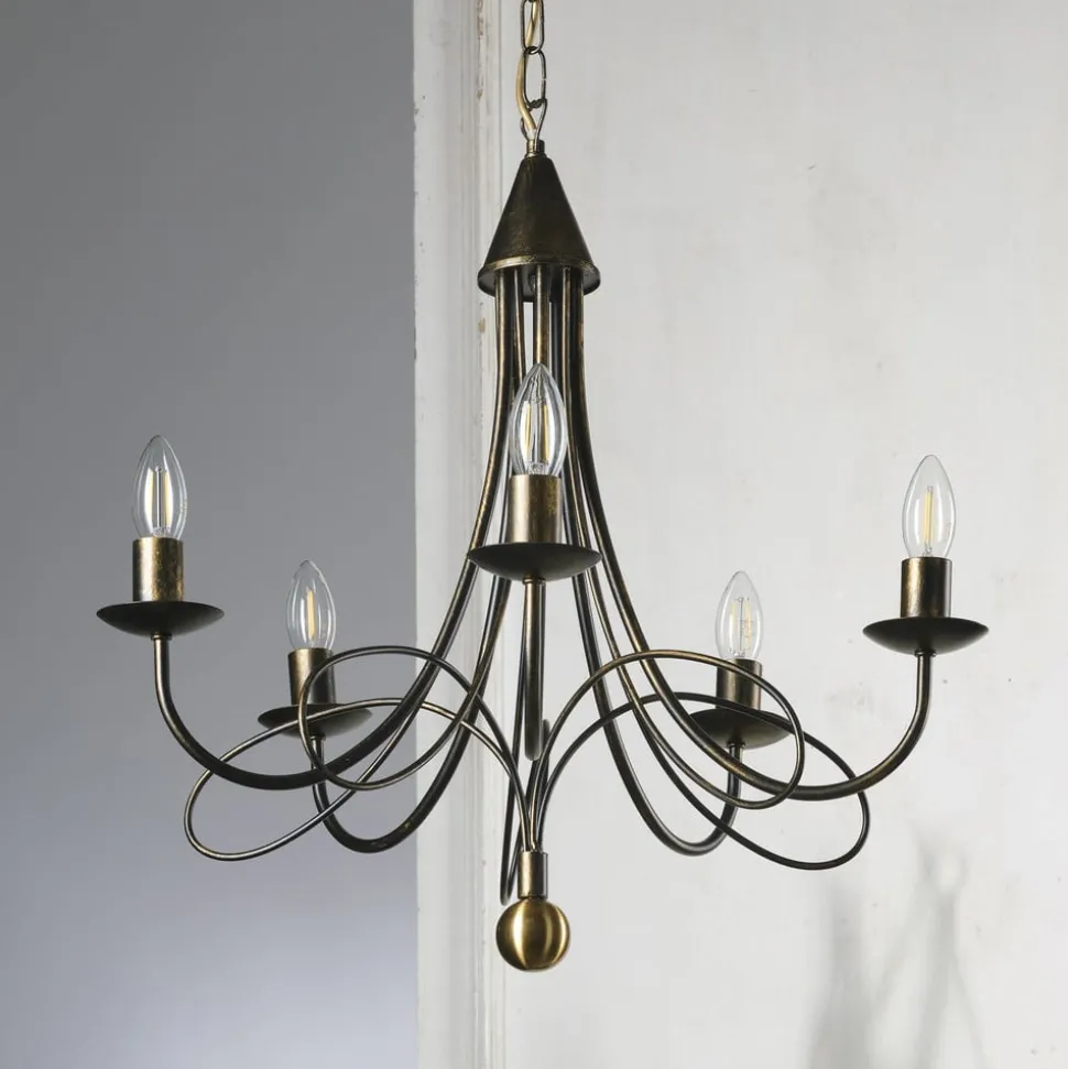 De kroonluchter Milvia combineert klassieke elegantie met moderne veelzijdigheid. Deze lamp is gemaakt van hoogwaardig metaal en uitgevoerd in een aantrekkelijke bronzen tint, waardoor hij naadloos past in eet- en woonkamers. De 5-lamps constructie zorgt voor een gelijkmatige en aangename lichtverspreiding, die elke ruimte in een stijlvolle sfeer dompelt.