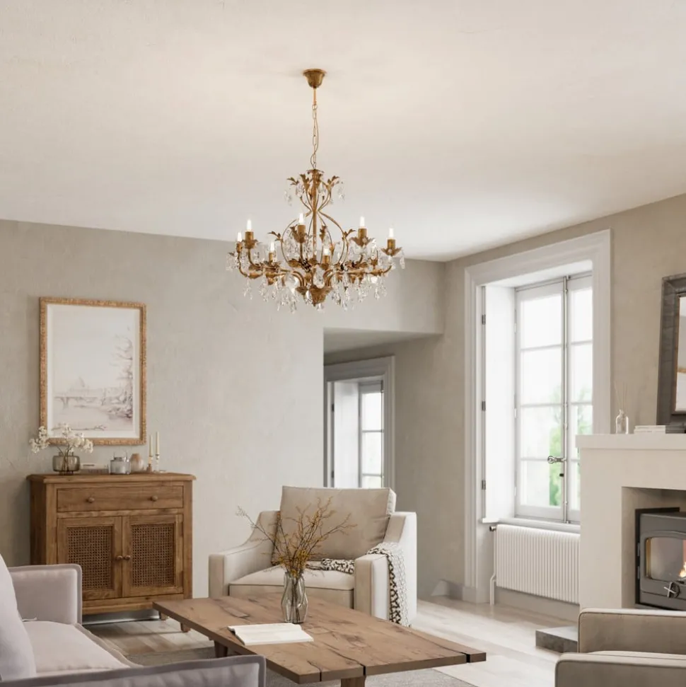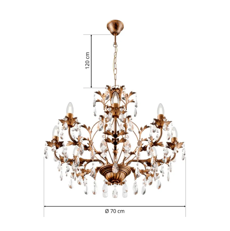 Kroonluchter Teresa, brons, kristal, Ø 70 cm, 8 kaarslampen