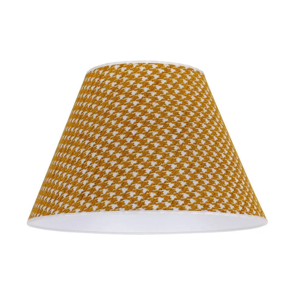 De lampenkap Sofia met zijn opvallende pied-de-poule-patroon combineert stijlvolle esthetiek met hoogwaardige afwerking. De kap is gemaakt van fijn textiel en heeft een harmonieuze combinatie van geel en wit, die elke ruimte een bijzonder tintje geeft. Het klassieke ontwerp van het pied-de-poule-patroon zorgt voor een tijdloze look die zowel in moderne als traditionele interieurstijlen accenten legt.