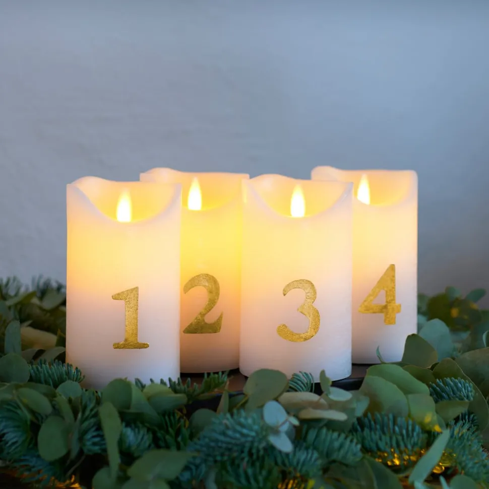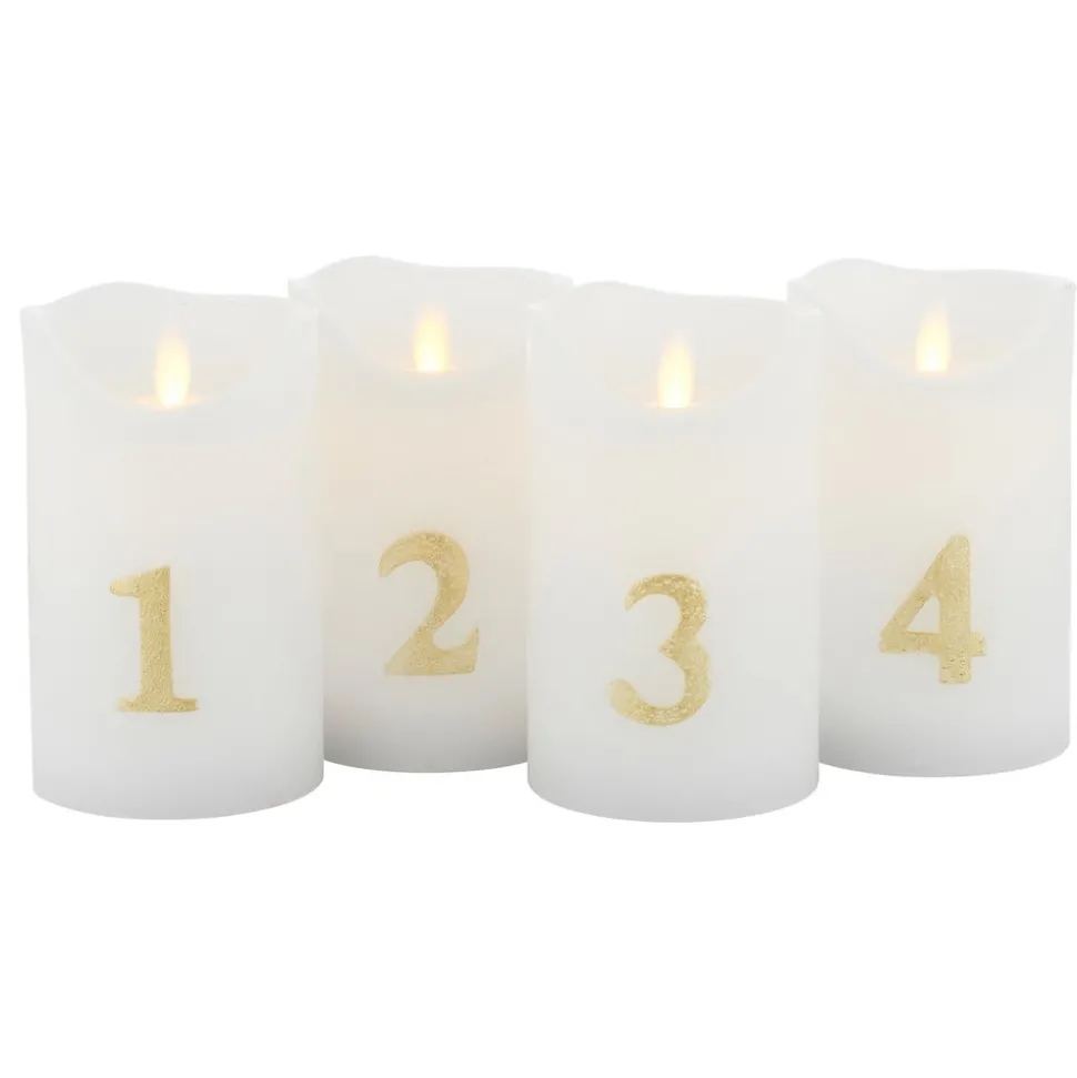 LED kaars Sara Advent 4st hoogte 12,5cm wit/goud