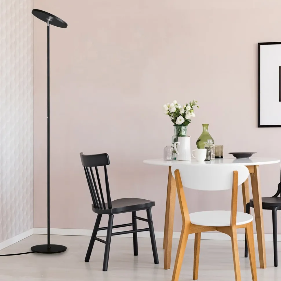 LED vloerlamp Bever, zwart, metaal, CCT, dimbaar, 180 cm