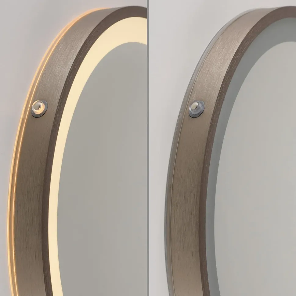LED-wandspiegel VIDRO, brons, Ø 36 cm, powerbank, schakelaar