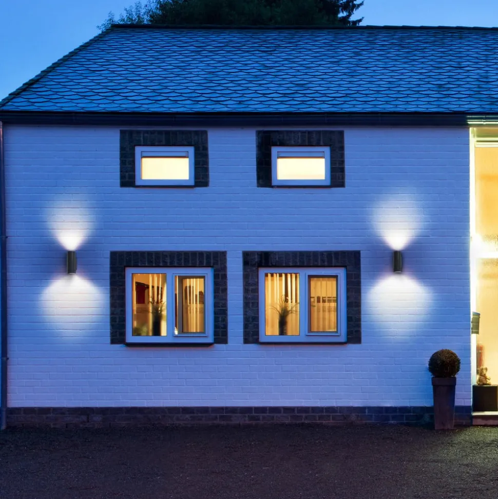Endura Classic Itys buitenwandlamp met GU10 fitting De buitenwandlamp Itys uit de Endura Classic serie van LEDVANCE, gemaakt van donkergrijs spuitgegoten aluminium, is uitgerust met twee GU10 fittingen, beschermingsgraad IP65 en gematteerde diffusors. Ze spot zowel naar boven als naar beneden en creëert effectieve lichtaccenten op de gevel, bijvoorbeeld 2 armaturen rechts en links van de ingang. Dankzij de keuze uit verschillende lampen is een hoge mate van flexibiliteit in het verlichtingsontwerp gegarandeerd