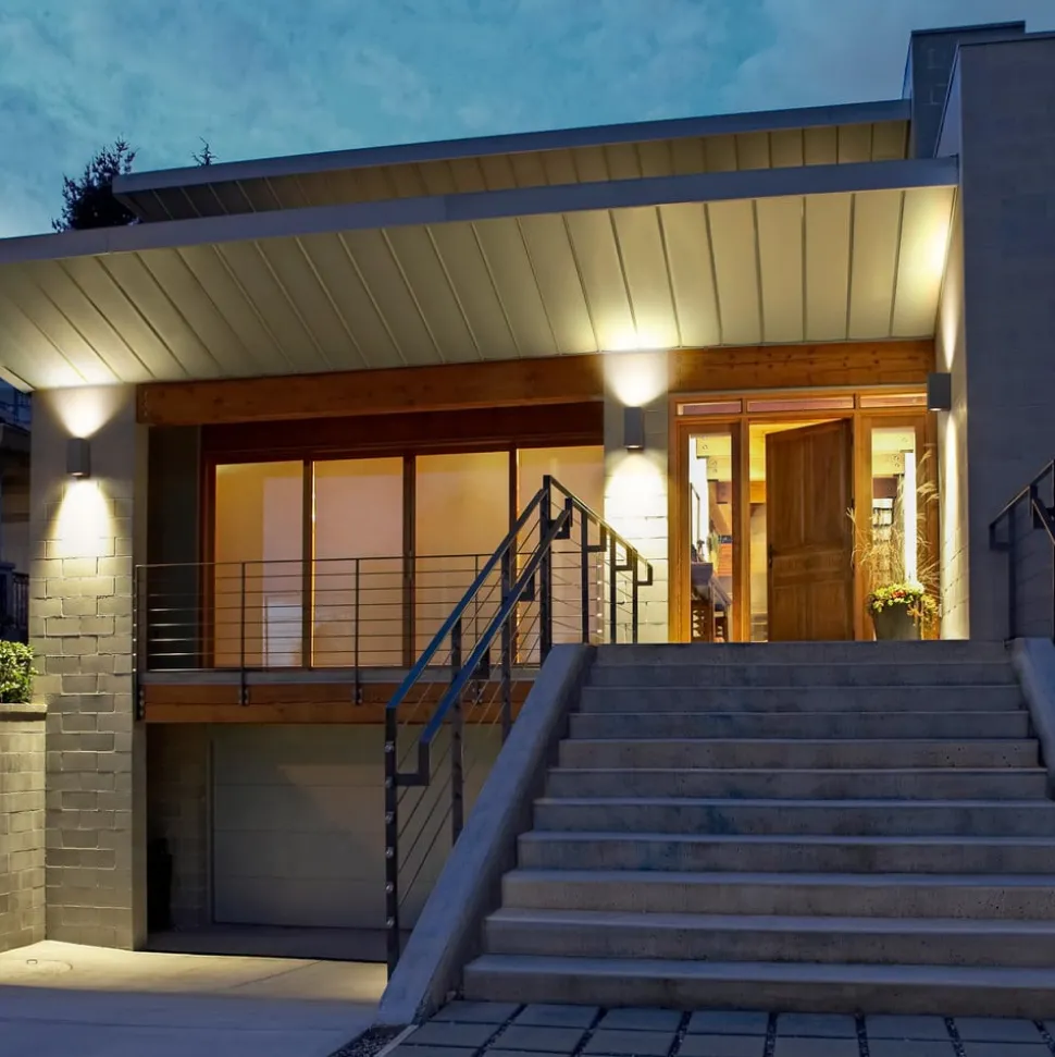 De Endura Classic Square buitenwandarmatuur zorgt voor een opwaarts lichtaccent op de gevel en tegelijkertijd voor een functionele, neerwaartse verlichting van een entree of voetpad. De kubusvormige behuizing van aluminium in één kleur bevat een GU10 fitting aan de boven- en onderkant voor montage met de gewenste lichtbron.