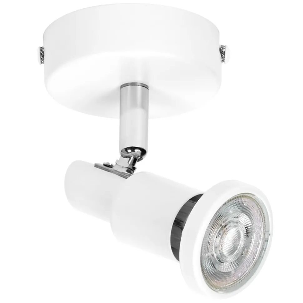 1-lamp GU10 plafondspot met dimbare LED lamp De Spot LED plafondspot is gemaakt van staal met een matte oppervlakteafwerking en wordt geleverd met een dimbare GU10 LED lamp van OSRAM met een warmwitte lichtkleur. De spot kan naar wens worden gedraaid en gezwenkt dankzij het ingebouwde kogelgewricht. De montage- en aansluitaccessoires zijn inbegrepen. Productvoordelen van de Spot-armatuurserie: – Tijdloos design en duurzaamheid dankzij vervangbare lampen – Verstelbare lampenkoppen – Hoogwaardige behuizing met matte afwerking – Veelzijdig aanpasbaar dankzij vervangbare LED lampen