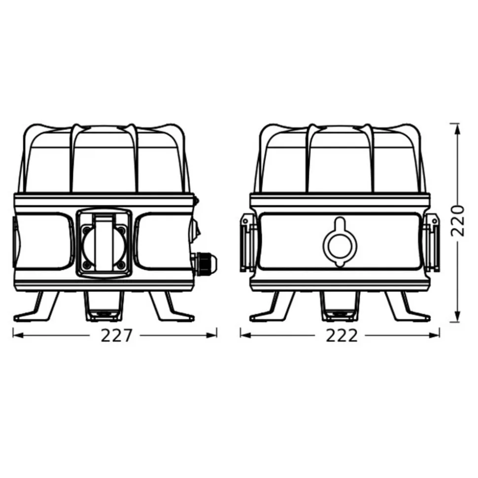 LED-werklamp LED-Worklight Value 360° Socket De LED-werklamp biedt niet alleen helder licht rondom, maar ook twee stopcontacten waarop andere apparaten tot een totaal vermogen van 3000 W kunnen worden aangesloten. De lamp is uitgerust met een 150 cm lange kabel met stekker. De lamp is gemaakt van hoogwaardig kunststof en is bijzonder robuust met een slagvastheidsindex IK08. – Kan worden gebruikt bij omgevingstemperaturen van -20 tot 40 °C – Met geïntegreerde, uitklapbare haak voor downlight-toepassingen – Contactdozen beschermd door middel van zelfsluitende deksels