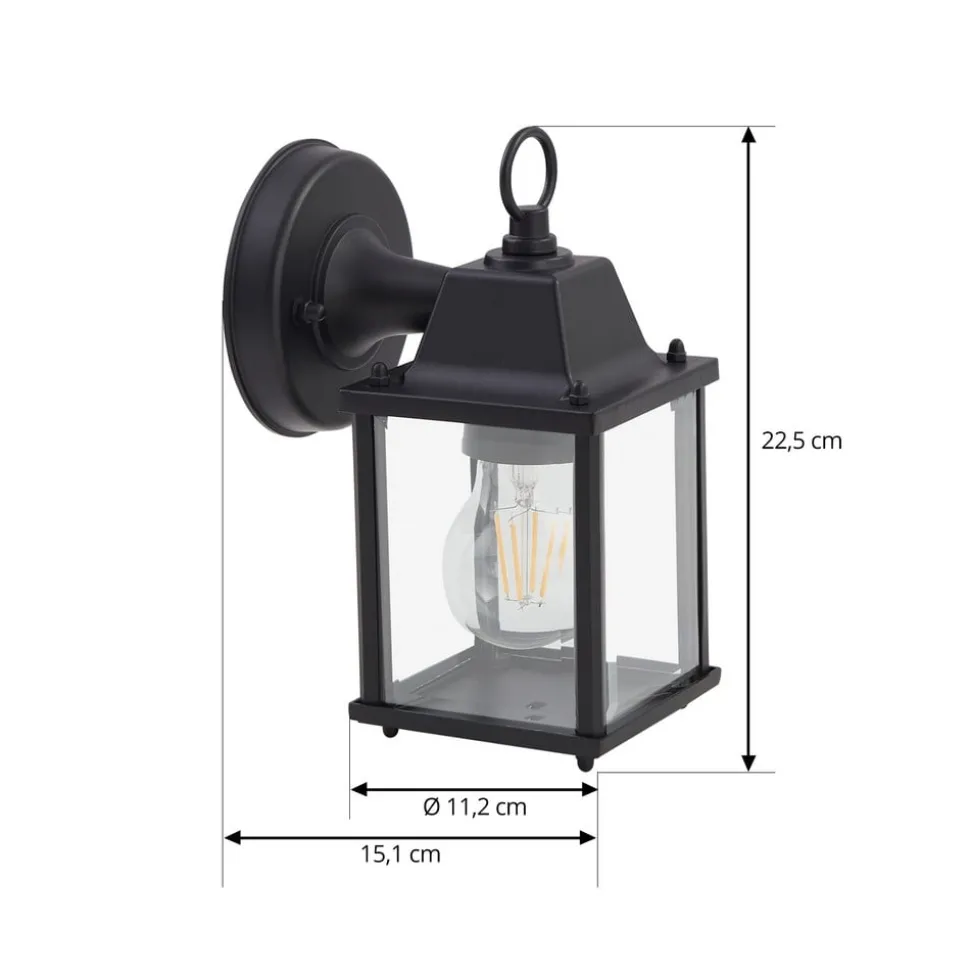 Buitenwandlamp Rurik: rustiek design ontmoet functionaliteit De buitenwandlamp Rurik combineert robuuste materialen met een ontwerp dat doet denken aan de traditionele landhuisstijl. Gemaakt van hoogwaardig aluminium en glas biedt deze lamp niet alleen een aantrekkelijke zwarte look, maar ook de nodige duurzaamheid voor buitengebruik. Of het nu op het terras, balkon of aan de gevel is – Rurik plaatst accenten en creëert een uitnodigende sfeer. De fitting E27 biedt flexibiliteit in de keuze van de lamp, zodat individuele lichtomstandigheden kunnen worden gecreëerd. Hoewel een dimmer niet is inbegrepen, kan de helderheid worden aangepast met een externe dimmer om de gewenste sfeer te creëren.