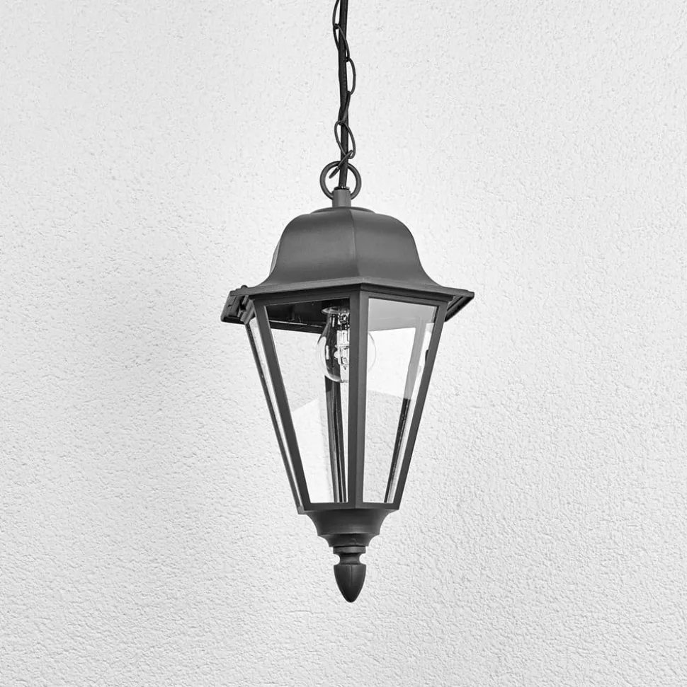 Antracietkleurige hanglamp Edana voor buiten Als je naar Edana kijkt, moet je meteen denken aan de lantaarns die in voorbije eeuwen de belangrijkste vorm van verlichting waren. Dit geeft de hanglamp een nostalgische uitstraling, waardoor Edana ook prachtig lijkt te passen bij historische gebouwen. Het oppervlak heeft een tijdloze antracietkleur en Edana is ontworpen als buiten hanglamp die kan worden voorzien van E27 lampen. Dit betekent dat niet alleen de bekende gloei- of halogeenlampen hier gebruikt kunnen worden, maar dat wie dat wil ook LED lampen kan gebruiken, die heel weinig energie verbruiken en soms zo ontworpen zijn dat ze bedrieglijk veel op een gloeilamp lijken.