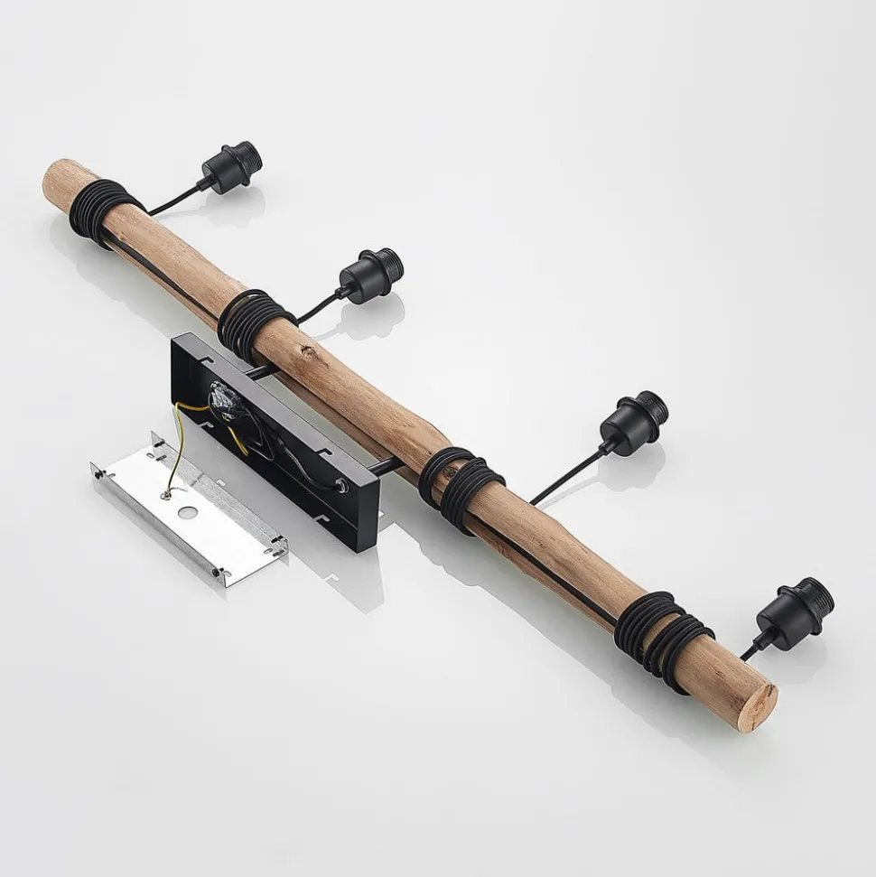 Hanglamp Amilia met vier kappen van textiel aan een houten balk Een zwarte, een grijze, een beige en een bruine kap in verschillende vormen en maten en een lange stang van eucalyptushout aan een baldakijn van metaal – deze combinatie maakt hanglamp Amilia tot een blikvanger boven de eettafel. Elke kap hangt aan een met textiel beklede kabel en kan naar wens worden afgehangen door de kabel om de houten stang te wikkelen. Dankzij de harmonieuze kleurencombinatie past de lamp in veel verschillende interieurs. Flexibiliteit in het lichtontwerp en de energiebehoefte van het armatuur is mogelijk dankzij de vrije keuze van lichtbronnen (max. 60 W, E27 lampvoet – niet inbegrepen). De textielen kappen zorgen ervoor dat het licht verblindingsvrij de kamer in wordt gestraald, terwijl de openingen aan de onderkant het oppervlak eronder helderder verlichten.