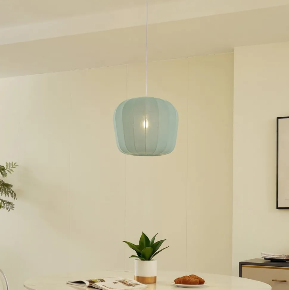 Helin hanglamp met stoffen kap in lichtblauw De Helin hanglamp in blauw combineert modern design met Scandinavische lichtheid en creëert een sfeer die zowel gezellig als inspirerend is. De stoffen textuur zorgt voor een zachte lichtspreiding die de eetkamer, woonkamer of slaapkamer baadt in uitnodigende warmte. Hoewel er geen dimmer wordt meegeleverd, kan de intensiteit van het licht worden aangepast aan persoonlijke voorkeur door een externe dimmer te installeren. Ervaar hoe de Helin hanglamp de stemming in de kamer verandert en een omgeving creëert die zowel uitnodigt tot ontspanning als creativiteit stimuleert.