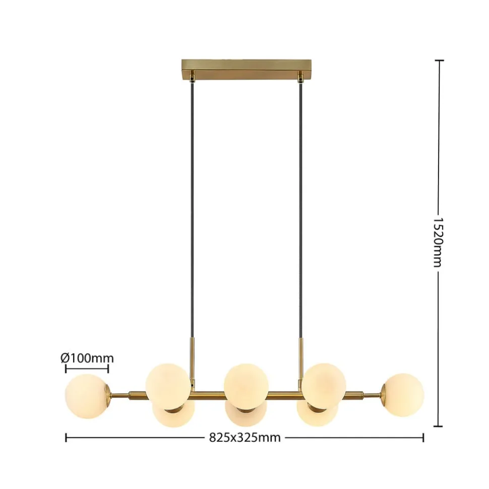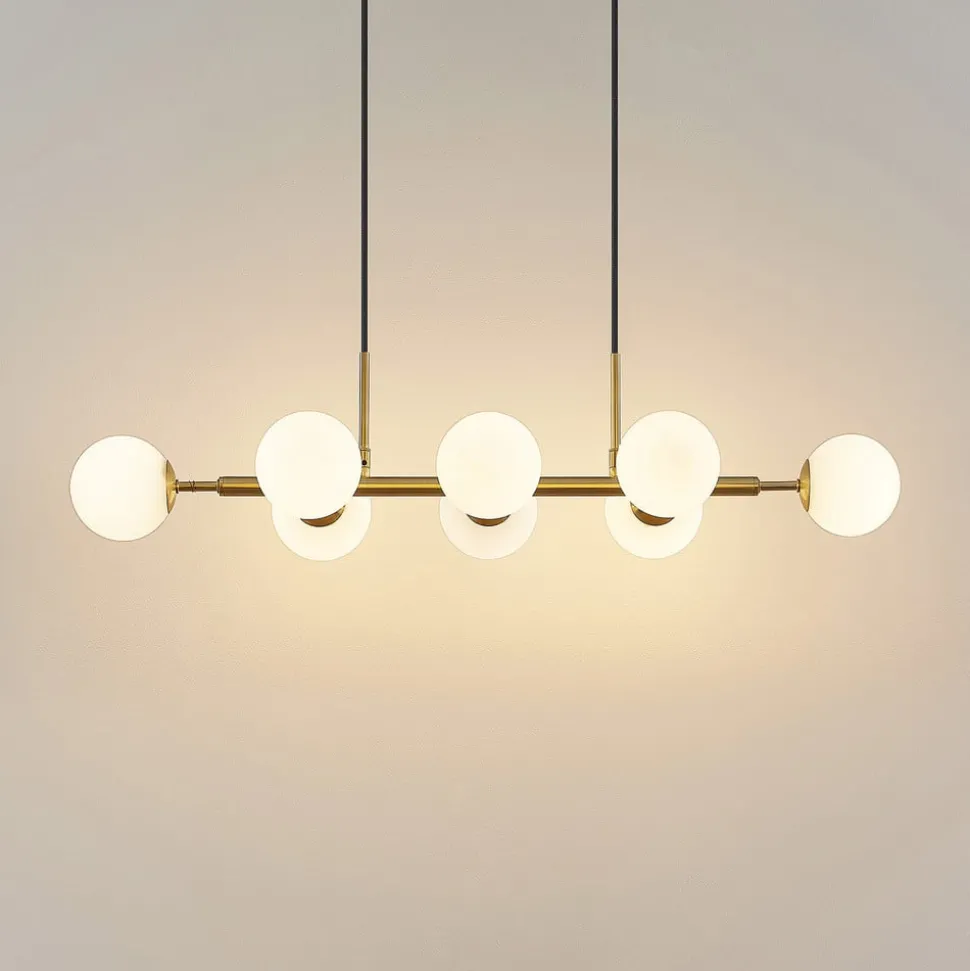 Lindby hanglamp Kiamo, 83 cm, messing, wit, glas, G9