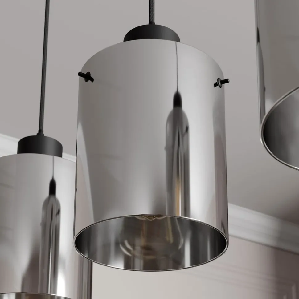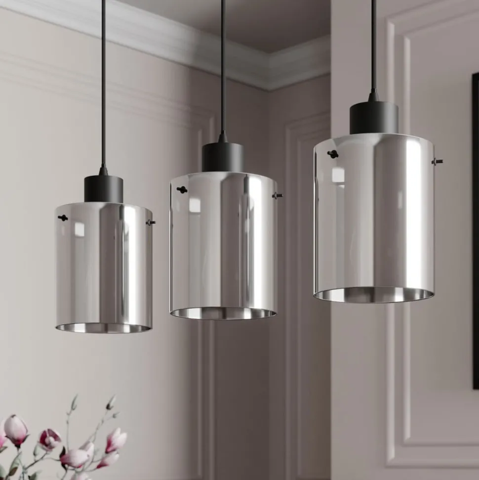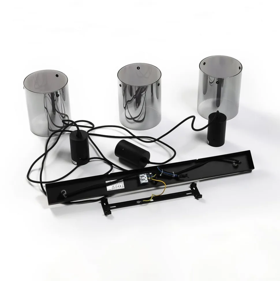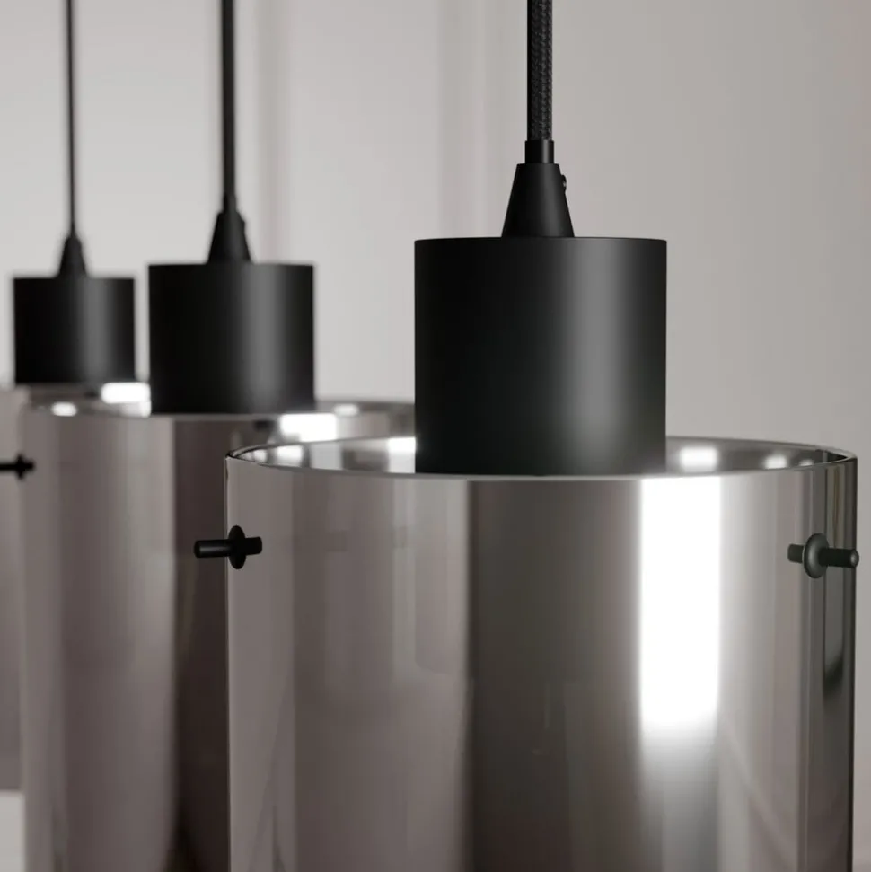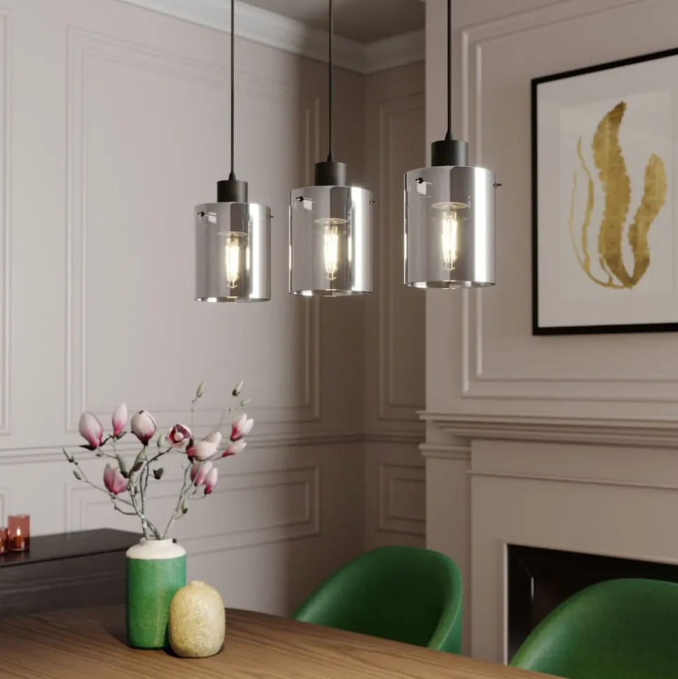 Lindby hanglamp Kourtney, 3-lamps, zwart/grijs, glas, E27