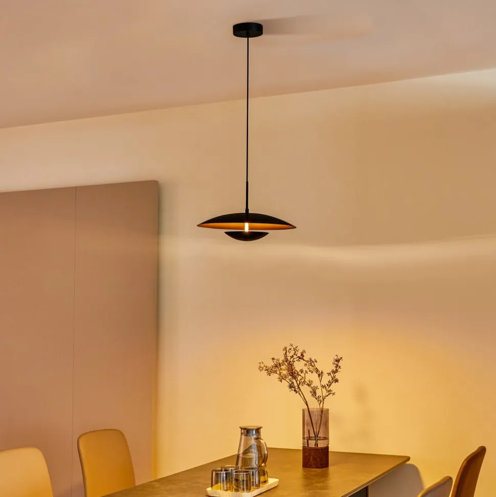 Moderne Tiama LED hanglamp met tweekleurige kap Deze lamp slaat een goed figuur in elk huis. De warmwitte lichttemperatuur geeft je woonruimte een prachtige flair. De hanglamp heeft een uitstekende stijl en integreert prachtig in elke kamer. Ze komt tot haar recht in elke kamer en creëert een geweldige sfeer. De lamp is gemaakt van ijzer in de kleuren zwart en goud. Ze combineert alle kwaliteiten en HighLights die het merk Lindby kenmerken. Het geweldige ontwerp van de plafondlamp geeft elke kamer een prachtige sfeer die gemakkelijk bij uw bestaande decoraties past. Creëer aantrekkelijke verlichting in je huis met deze lamp.