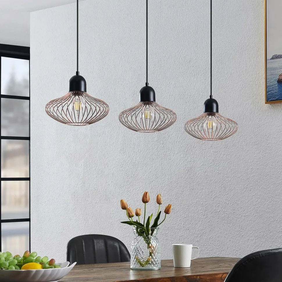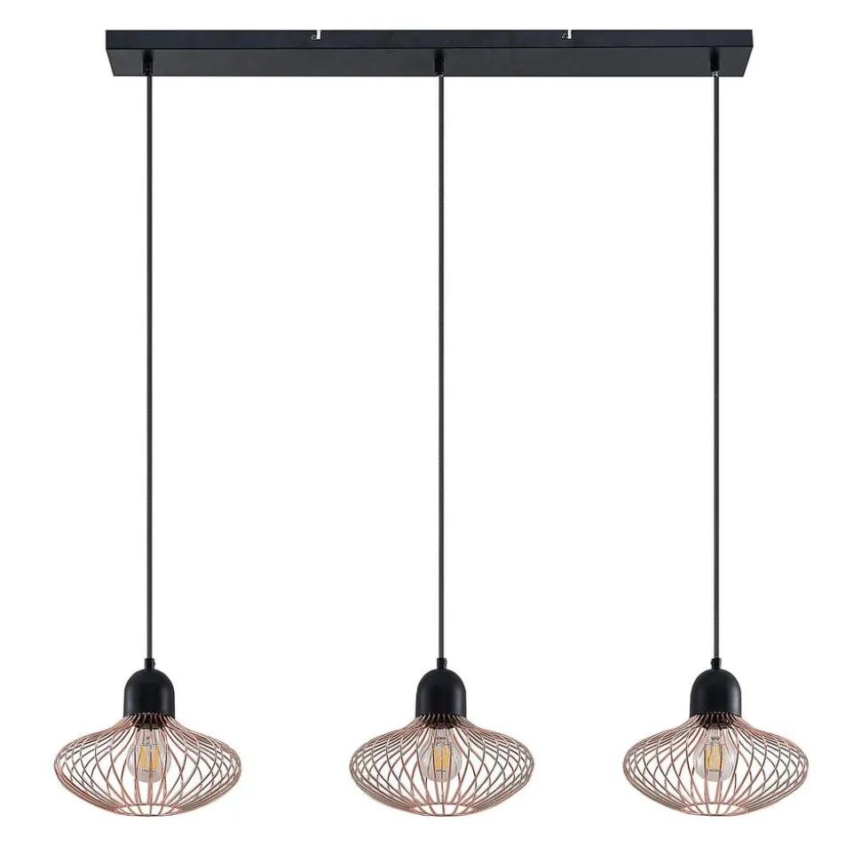 Lindby Justinos hanglamp, 3-lamps, koper