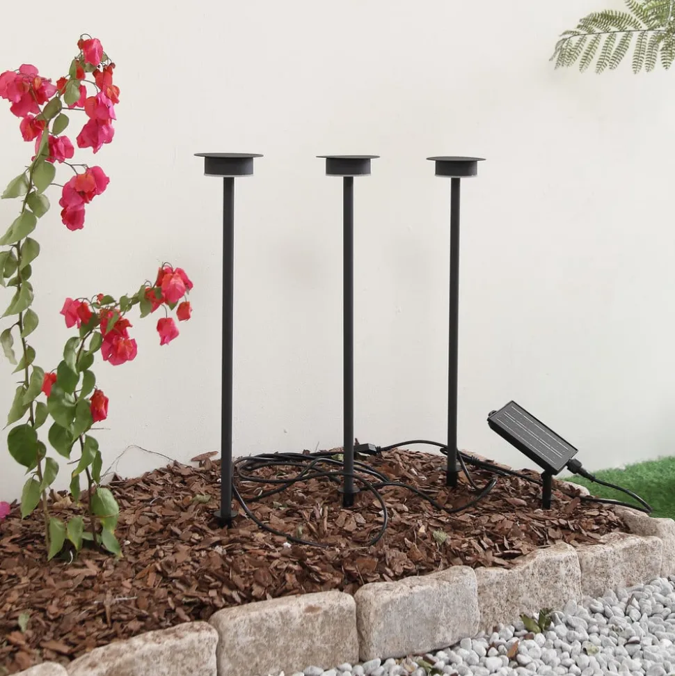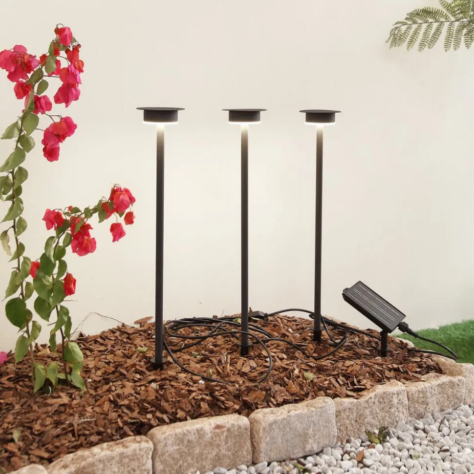 Lindby LED lamp op zonne-energie Lyris, set van 3, zwart, aluminium, 3.000K