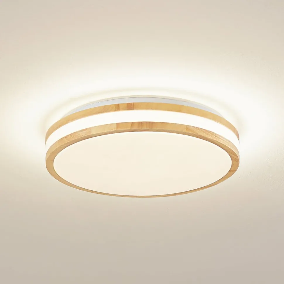 Lindby LED plafondlamp Emiva, Ø 39,5 cm, CCT, hout