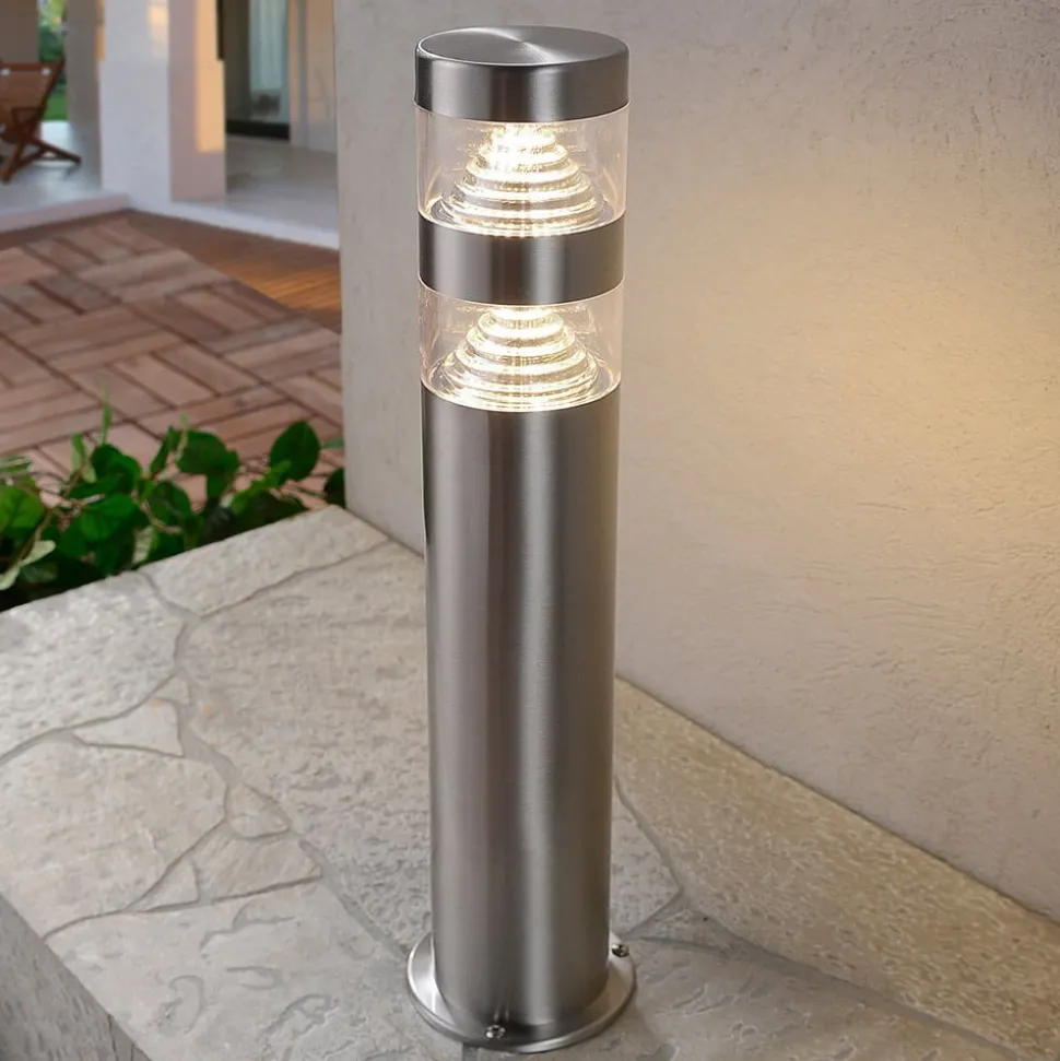 Lindby LED sokkellamp Lanea, 40 cm, grijs, roestvrij staal, IP44