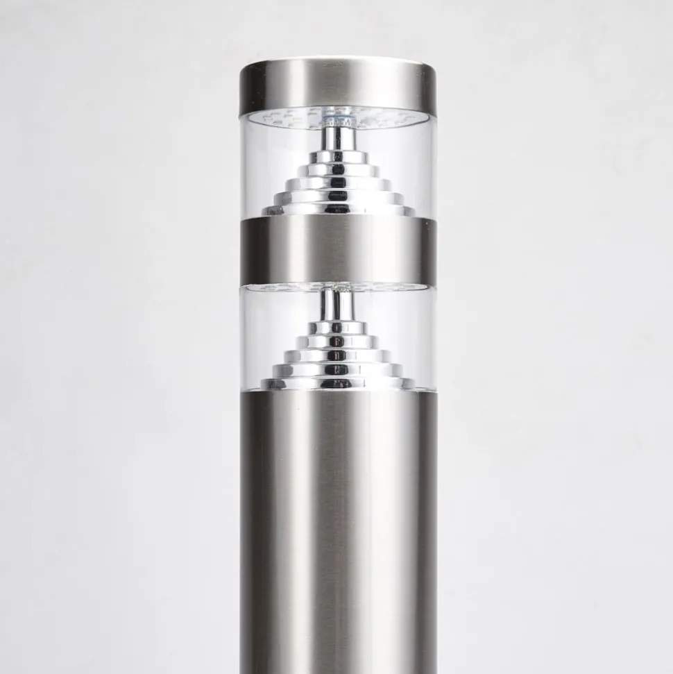 Lanea sokkellamp van roestvrij staal met LED sokkellamp van het merk Epistar Roestvrij staal is de eerste keuze als materiaal voor buitenlampen, omdat moderniteit en tijdloosheid hier visueel lijken te worden verenigd. Het matte zilveren oppervlak past bij veel architecturale stijlen en omgevingen. Met zijn moderne designtaal brengt de LED sokkellamp Lanea op een energiebesparende manier licht in de duisternis, want de LED’s genereren een relatief hoge lichtstroom, terwijl het energieverbruik laag blijft. De LED’s van het merk Epistar hebben een warmwitte gloed, wat altijd een goede keuze is op alle gebieden waar het gaat om wonen en leven, omdat dit een warm en gezellig effect heeft in vergelijking met koudere lichtkleuren.