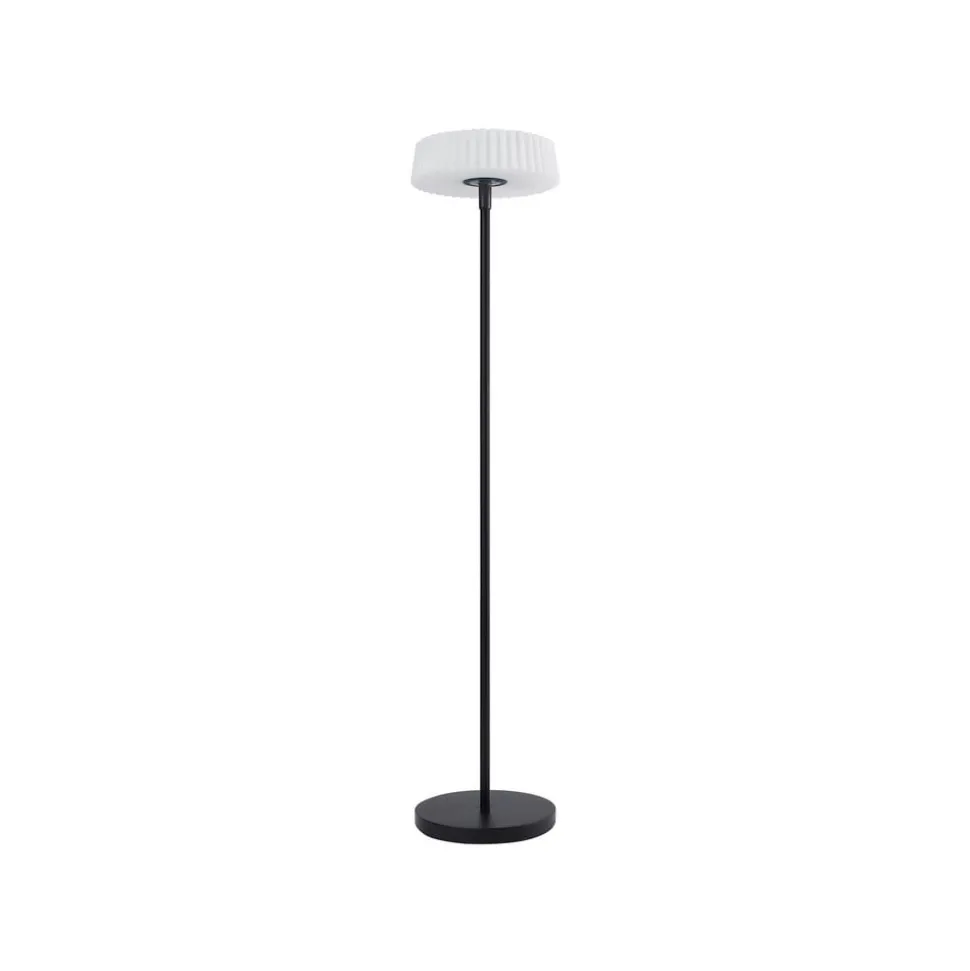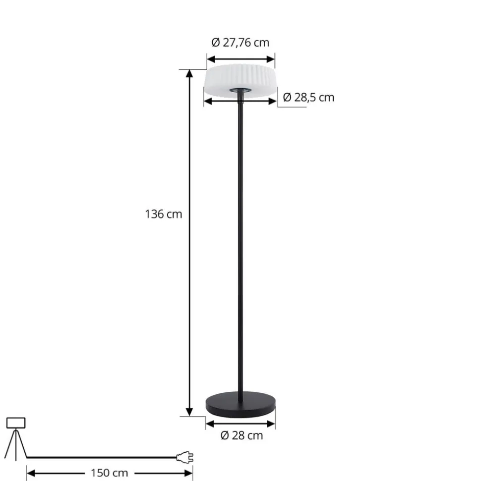 Dimbare LED vloerlamp Samine in zwart De Samine vloerlamp is een moderne verschijning die niet alleen een aantrekkelijk ontwerp heeft, maar ook praktische functies. Met een beschermingsgraad van IP54 is deze lamp op zonne-energie beschermd tegen stof en spatwater, waardoor het een ideale metgezel is voor buitengebruik. Dankzij de werking op zonne-energie kan de lamp ook overal worden geplaatst. Als de lichtenergie niet voldoende is, kan de geïntegreerde oplaadbare batterij worden opgeladen met de meegeleverde USB-kabel. De kap is opvallend gevormd en straalt het licht van de warmwitte LED-lichtbron uit over het hele lichaam, waardoor rondom een aangename sfeer ontstaat. De lichtintensiteit kan in drie fasen worden aangepast met de geïntegreerde dimmer.