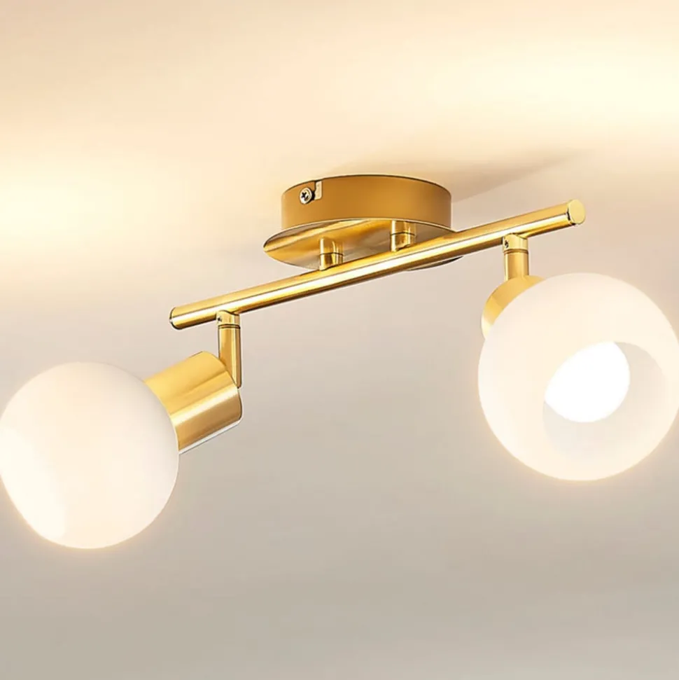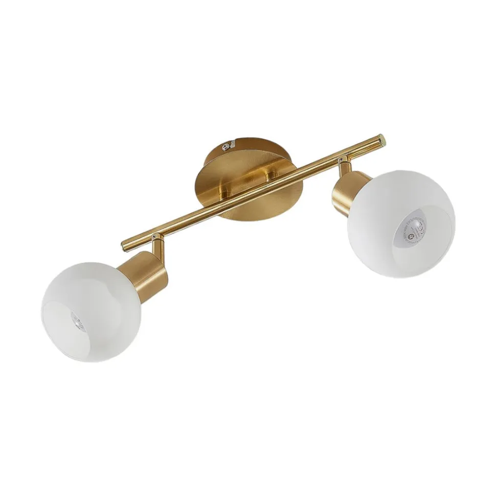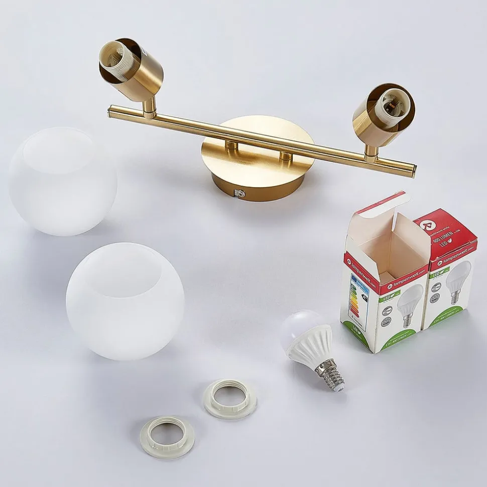 Elaina plafondlamp met opalen glazen kappen en E14 fittingen De witte glazen kappen van de 2-lamps plafondlamp creëren een mooi en gelijkmatig licht en de lampenkoppen kunnen naar wens worden aangepast. Dit maakt Elaina een geschikte lichtbron voor een breed scala aan doeleinden, kamers en stijlen. Ze kan worden uitgerust met vrij selecteerbare E14 lichtbronnen, zodat de lichtkleur en lichtintensiteit kunnen worden aangepast aan je eigen wensen.