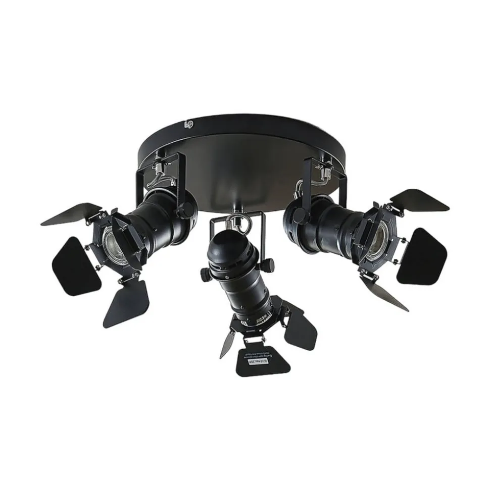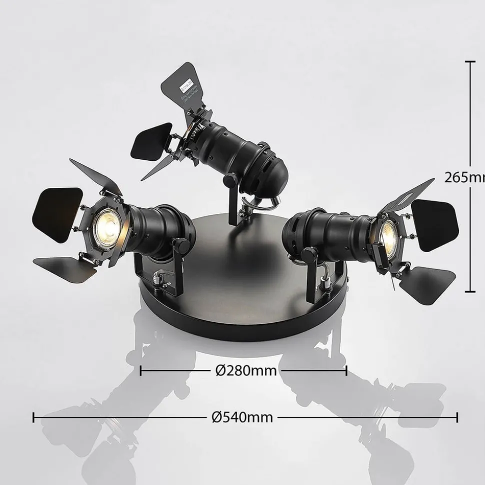 Moderne Tilen plafondlamp in de stijl van klassieke podiumspots Licht uit, spot aan: De ronde plafondlamp Tilen trekt de aandacht van elke toeschouwer. De drie draaibare en zwenkbare spots zijn gemodelleerd naar oude spots, die vroeger vaak werden gebruikt op podia of door fotografen en dat nu nog steeds doen. Terwijl de kleppen daar dienen om de lichtstraal te regelen, zijn de verstelbare kleppen van plafondlamp Tilen meer decoratief van aard. Desondanks zorgt Tilen voor een goede ruimteverlichting en is het ideaal voor gangen en moderne woon- of eetkamers.