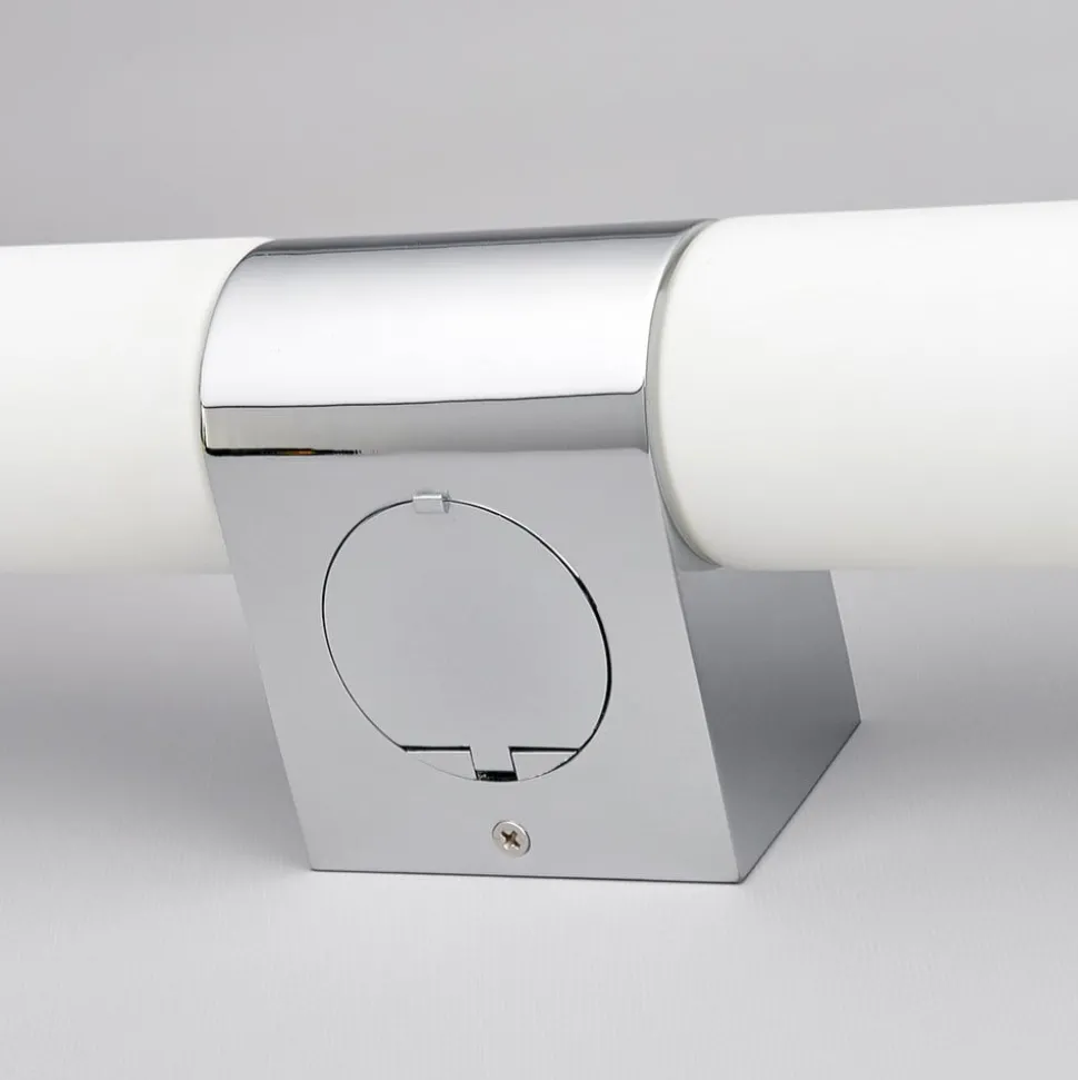 Praktische spiegellamp Ziva met geïntegreerd stopcontact In de badkamer of naast de spiegel wil je een licht dat niet verblindt en gelijkmatig is en, last but not least, bijdraagt aan een aangename sfeer. De Ziva spiegellamp voldoet absoluut aan deze eisen en kan ook bogen op een geïntegreerd stopcontact, wat natuurlijk zorgt voor een verhoogde functionaliteit, want niet alleen is voldoende helderheid gegarandeerd bij het kijken naar het spiegelbeeld, maar ook kan een haardroger of scheerapparaat aan de zijkant worden bediend zonder lang te moeten zoeken naar een mogelijk verafgelegen stopcontact. Een aanzienlijke verlichting voor de terugkerende tijd die je elke dag in de badkamer doorbrengt!