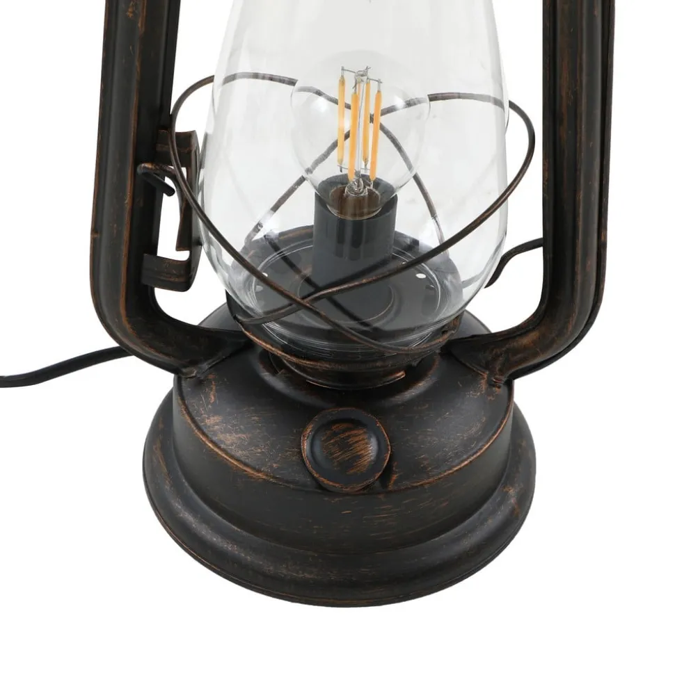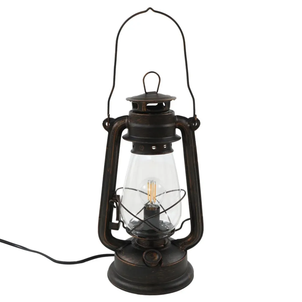 Raisa roestkleurige tafellamp in de vorm van een lantaarn, schakelaar in het snoer Raisa past perfect bij een antieke inrichtingsstijl, want de tafellamp in de vorm van een lantaarn belichaamt iets heel nostalgisch en doet zeker denken aan die lichtbronnen die eeuwen geleden werden rondgedragen om ’s nachts een beetje licht te geven ter oriëntatie. Het enige verschil is dat verlichting toen niet gebaseerd was op elektriciteit, maar op echte kaarsen of paraffine, die werden aangestoken met behulp van een lont. De schakelaar bevindt zich in de stekker, zodat de Raisa tafellamp snel en gemakkelijk kan worden bediend. Het roestkleurige oppervlak ziet er erg stijlvol uit en maakt de antieke look helemaal af.