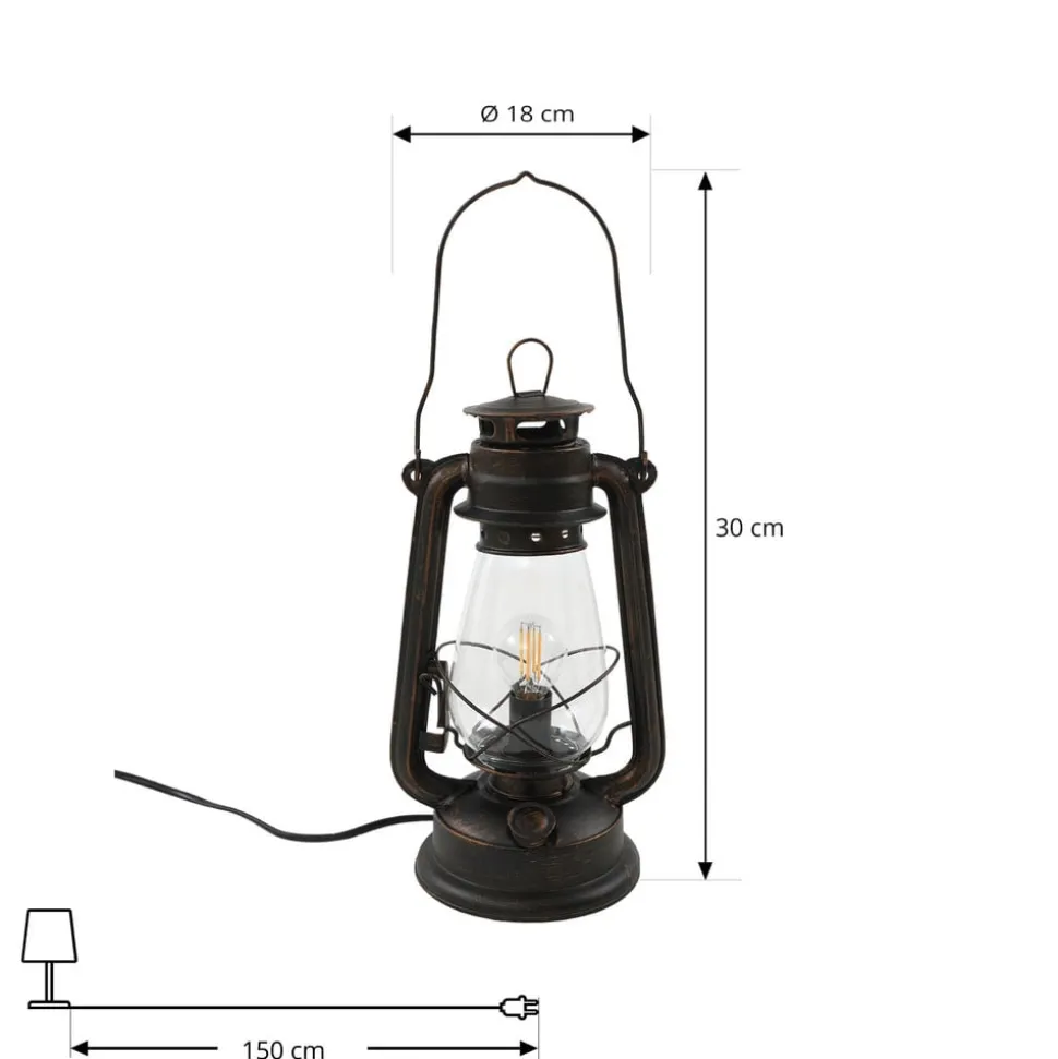 Lindby tafellamp Raisa, roestkleurig, metaal, lantaarn, E14