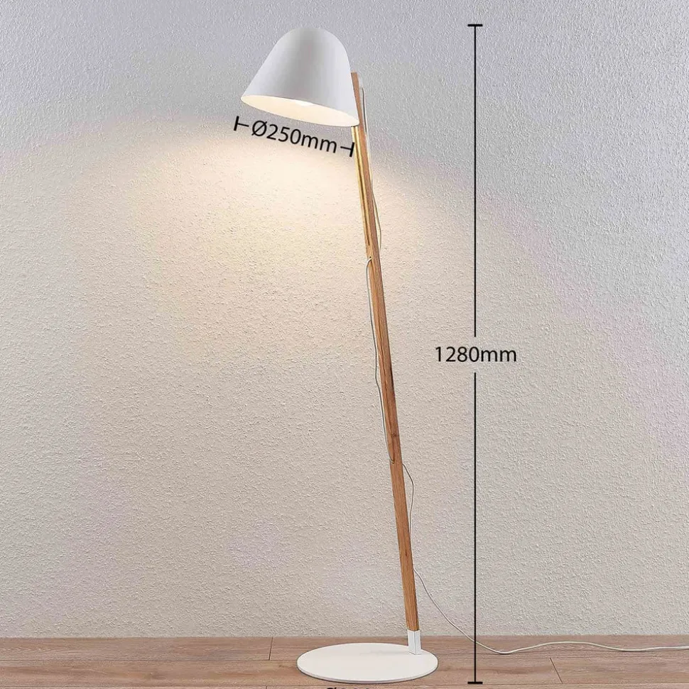 Prachtige vloerlamp Tetja in Scandinavische stijl met metalen kap en houten paal