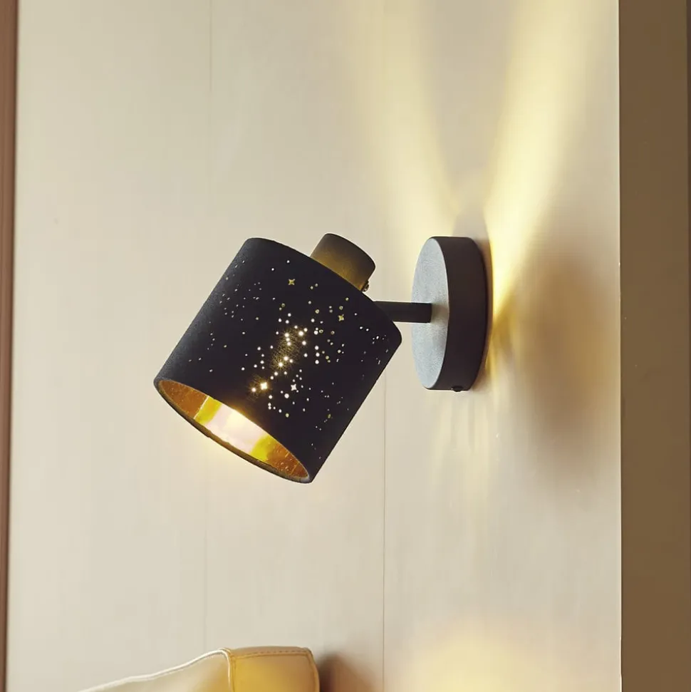 Lindby wandlamp Vasilia, Ø 12 cm, zwart/goud, stof