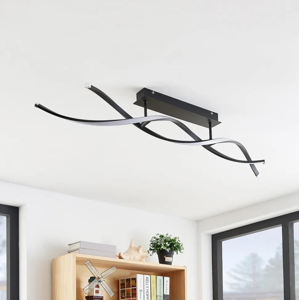 De LED-plafondlamp Welina presenteert zich in een zeer moderne uitstraling, die elke woonruimte direct opfleurt. De creatief gevormde lamphuizen stralen een zacht en warm wit licht uit. Het zwarte frame geeft de lamp een zekere elegantie en ernst.