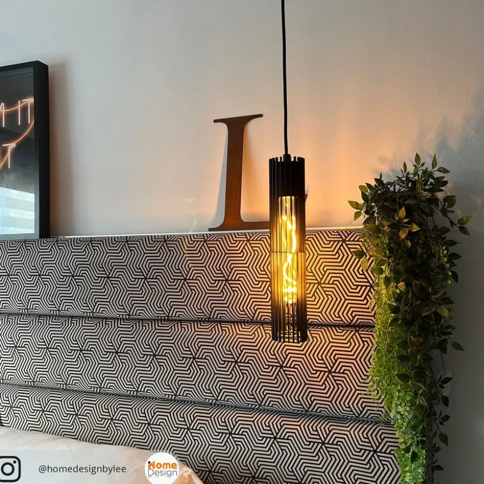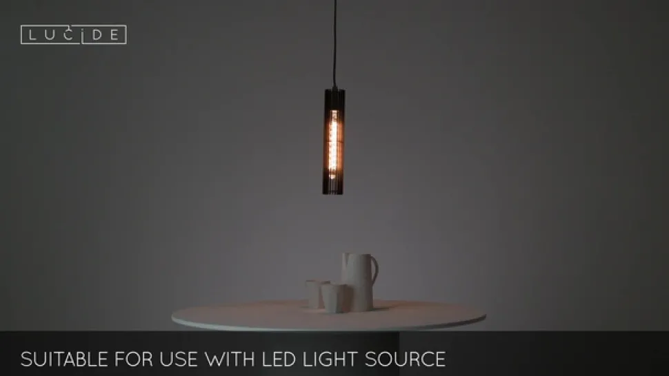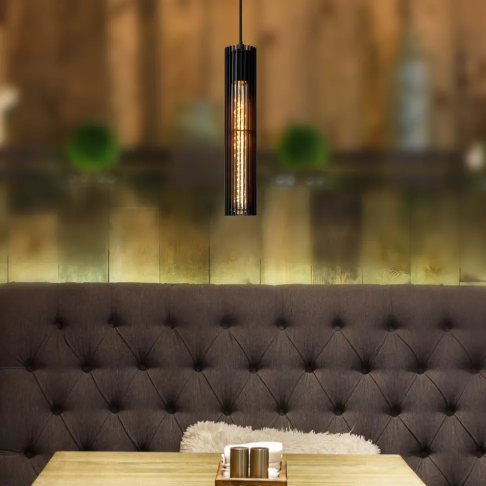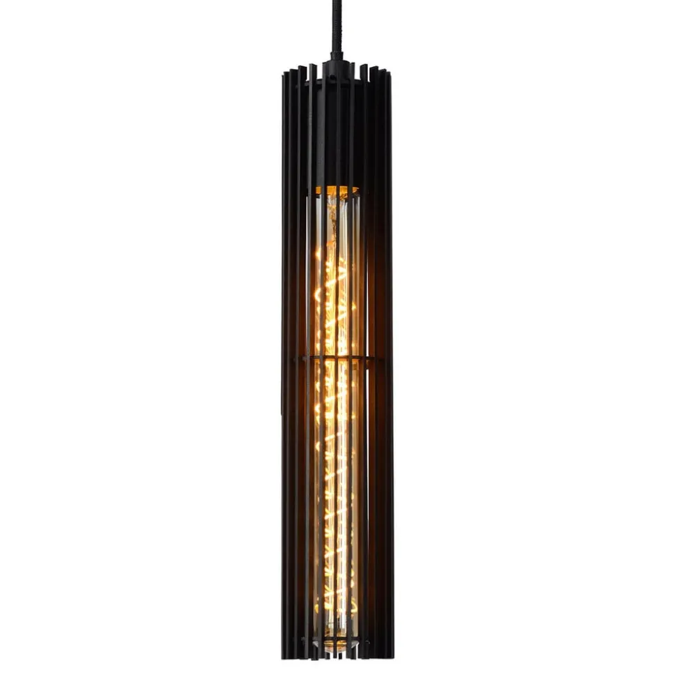 Lionel hanglamp in zwart met open kap Het uiterlijk van de Lionel hanglamp kan worden beïnvloed door de keuze van de lamp. De lange kap, die een open ontwerp heeft dat bestaat uit afzonderlijke fijne metalen stokjes, bevat een E27 fitting die moet worden voorzien van een buisvormige LED lamp (niet inbegrepen). Afhankelijk van de keuze van de lamp kunnen de lichtuitstraling en het uiterlijk van het armatuur worden beïnvloed. Zoals afgebeeld ziet een Lamp met gedraaide LED’s in gloeidraadtechnologie er het mooist uit.