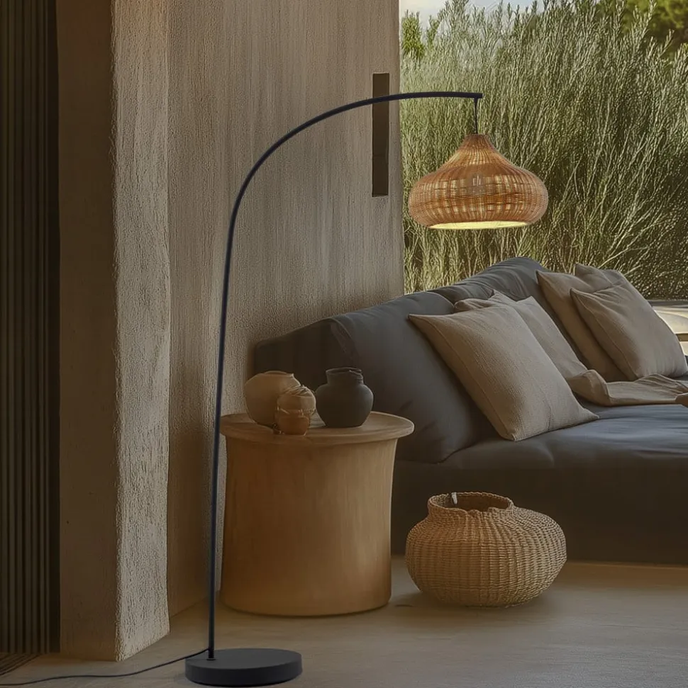 Perfect voor het terras – de Taniola buiten vloerlamp van rotan en ijzer met landhuisflair Ontdek de stijlvolle Taniola buiten vloerlamp, die niet alleen een visuele HighLight is voor patio’s en balkons met haar gevlochten rotan kap en robuuste ijzeren constructie, maar ook indruk maakt met haar beschermingsgraad IP44. De combinatie van beige en zwart past harmonieus in de rustieke sfeer van een landhuis en creëert een sfeer die zowel rustgevend als stimulerend kan zijn. Met de Taniola buiten vloerlamp wordt licht een fascinerend designelement in je buitenruimte.