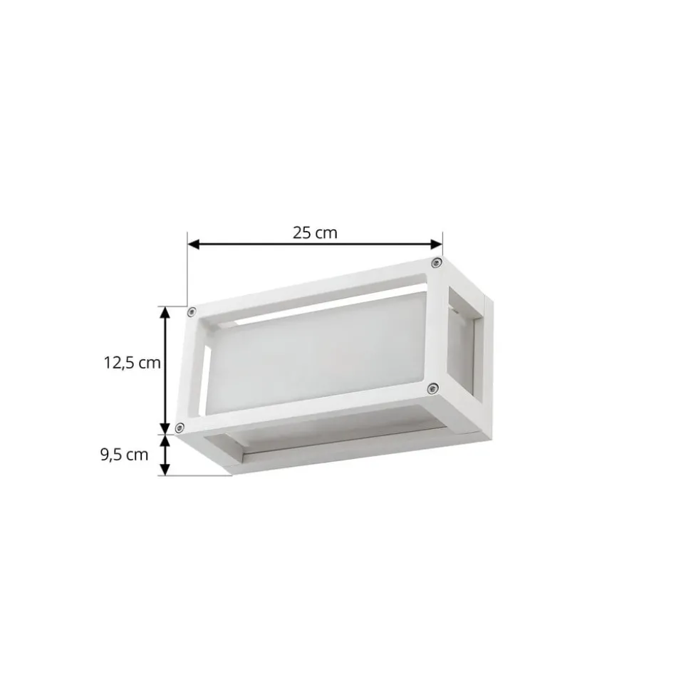 Witte buitenwandlamp Aurelien in een hoekig design De Aurelien buitenwandlamp combineert modern design met hoge functionaliteit. Deze armatuur is gemaakt van robuust aluminium en hoogwaardig glas en maakt indruk met haar elegante witte kleur en melkachtige glasoppervlak, dat zorgt voor een zachte lichtverdeling. Met een beschermingsgraad van IP54 is de Aurelien lamp optimaal beschermd tegen stof en spatwater, waardoor het de ideale verlichtingsoplossing is voor buiten.