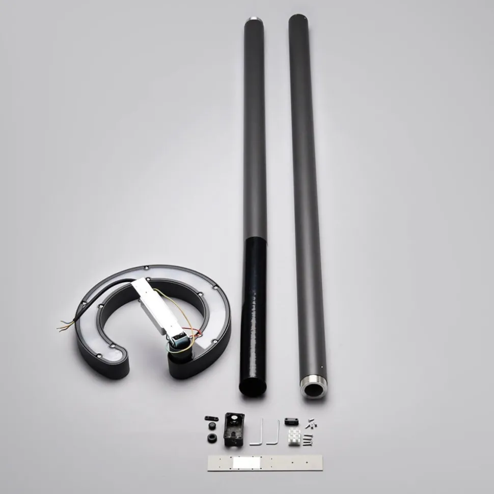- Ø paal 5 cm; lengte paal vloerinstallatie 40 cm; totale hoogte 240 cm; hoogte lampenkop 4 cm